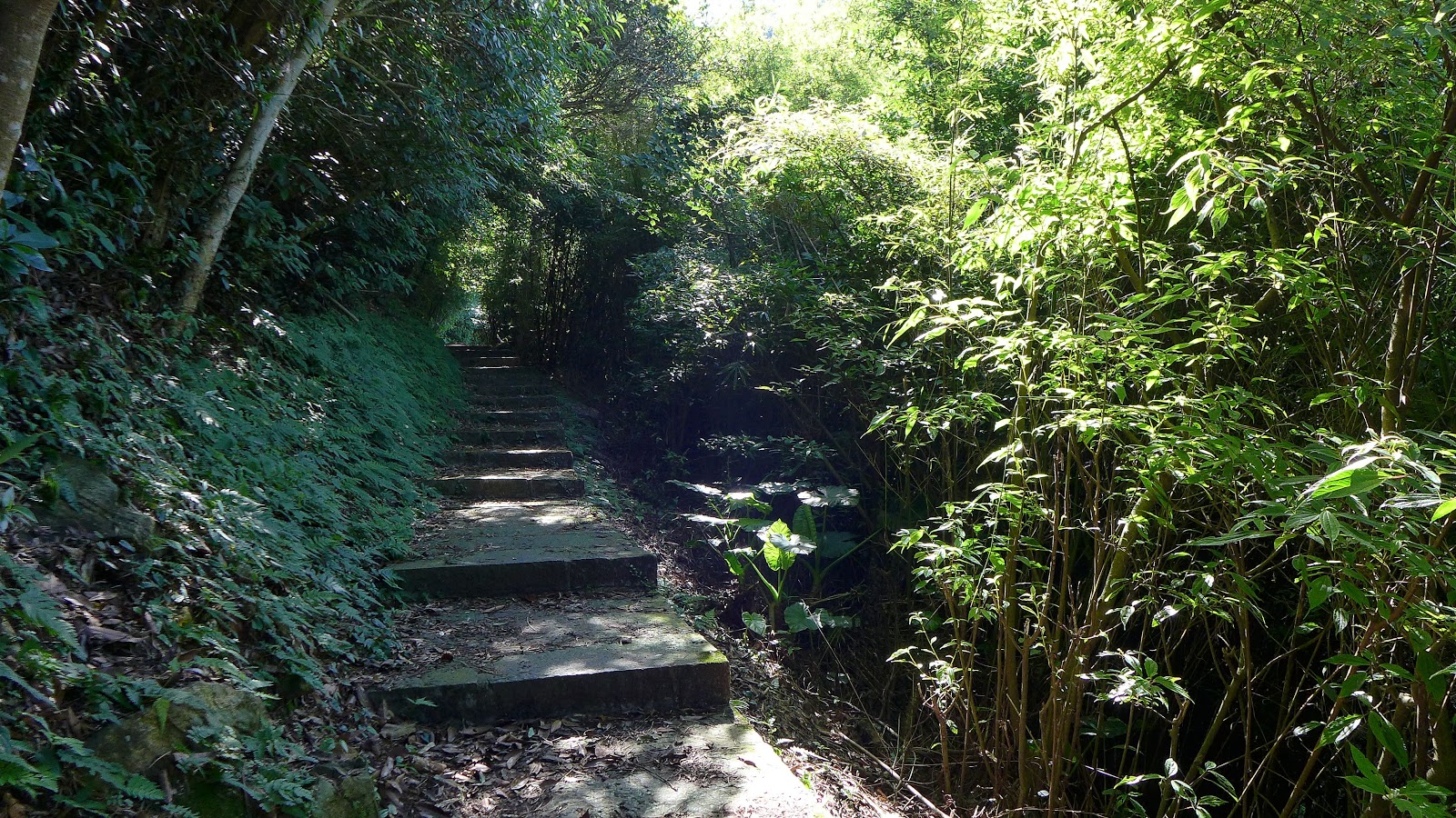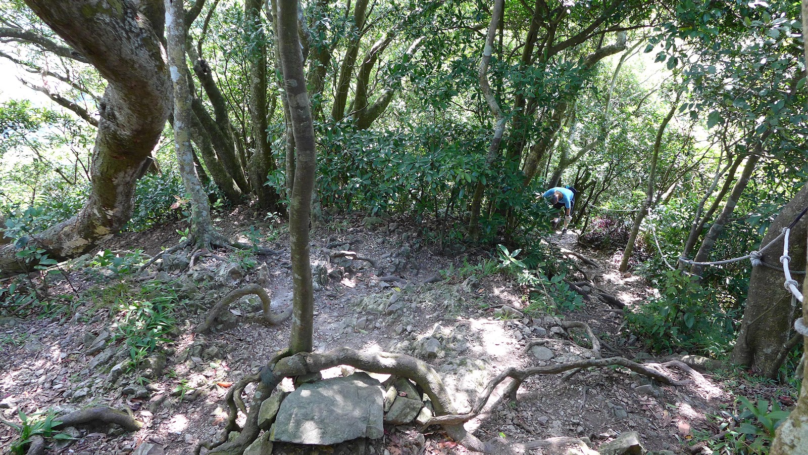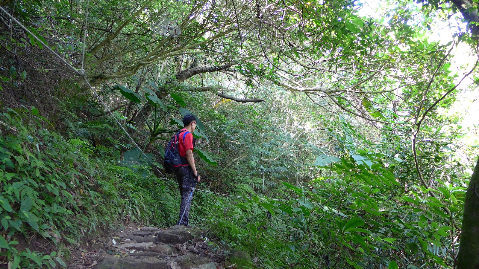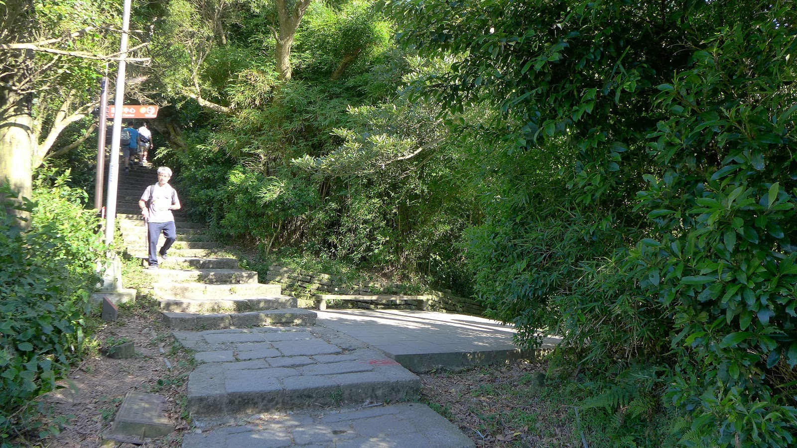 通過寺廟後循路徑開始往上爬,有一處陡上切點不取續行石階路