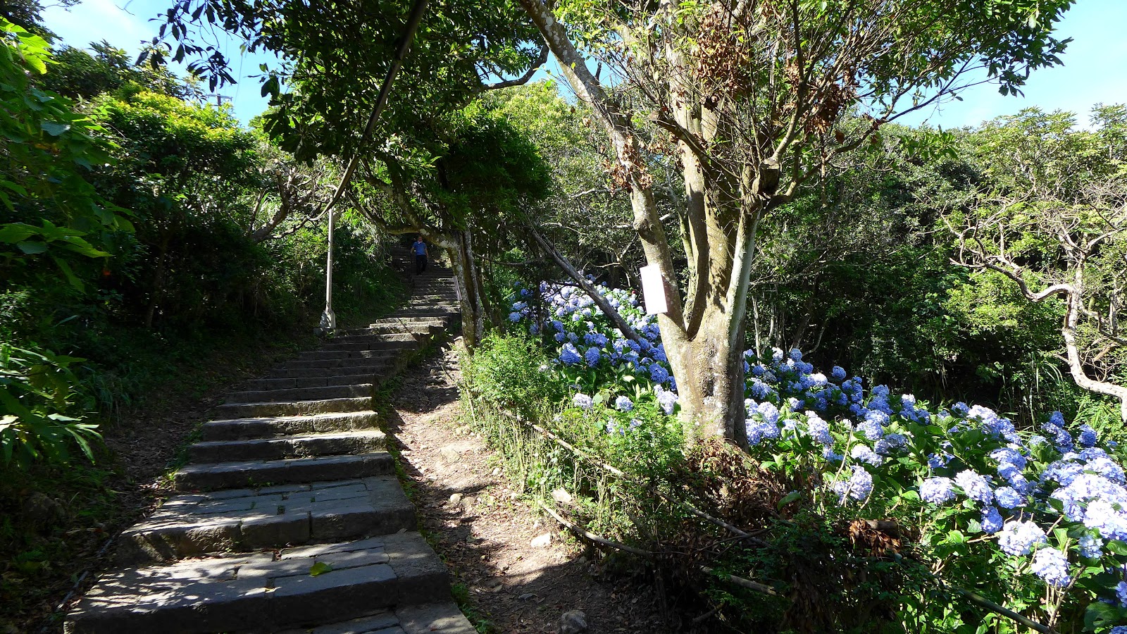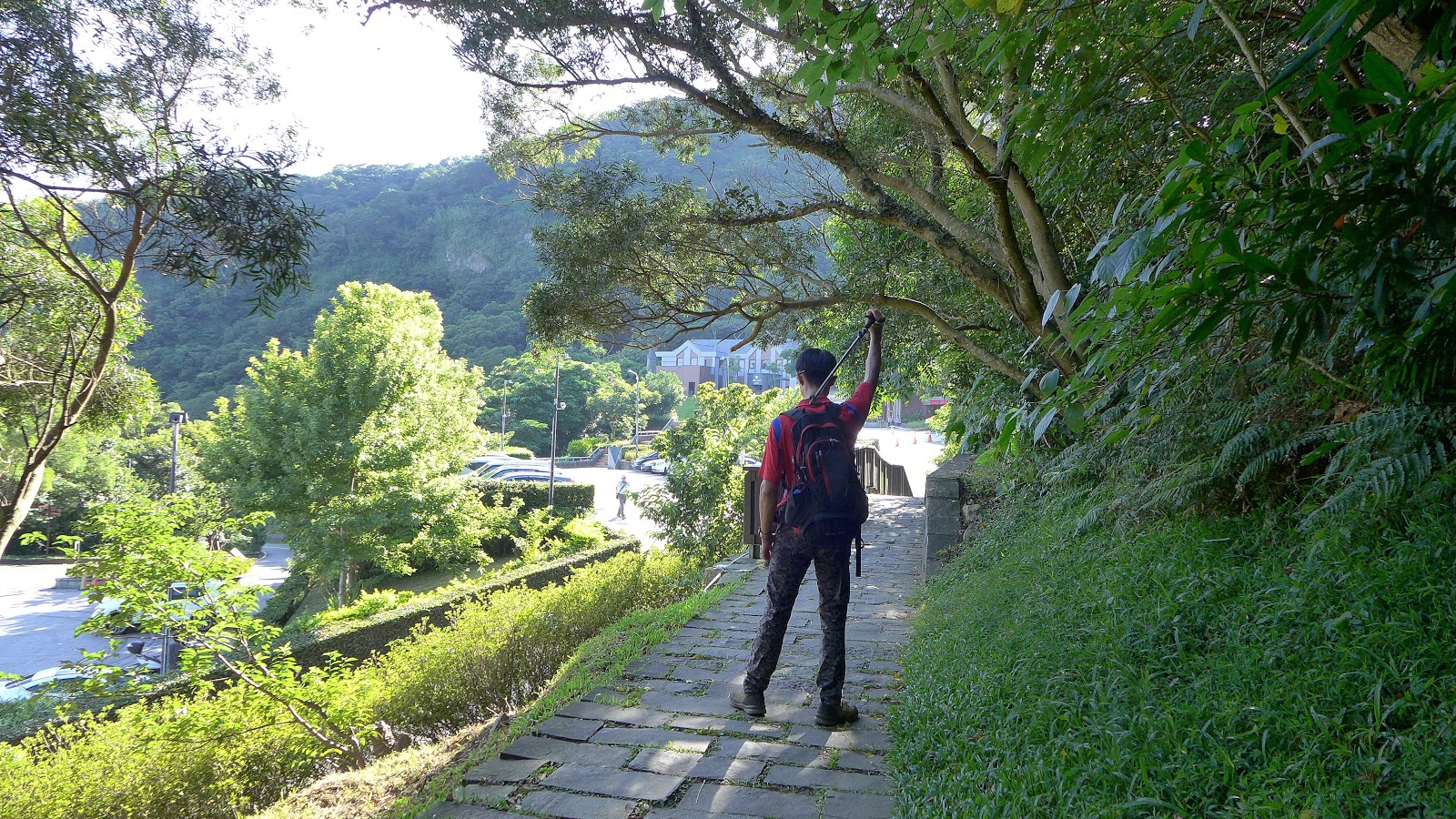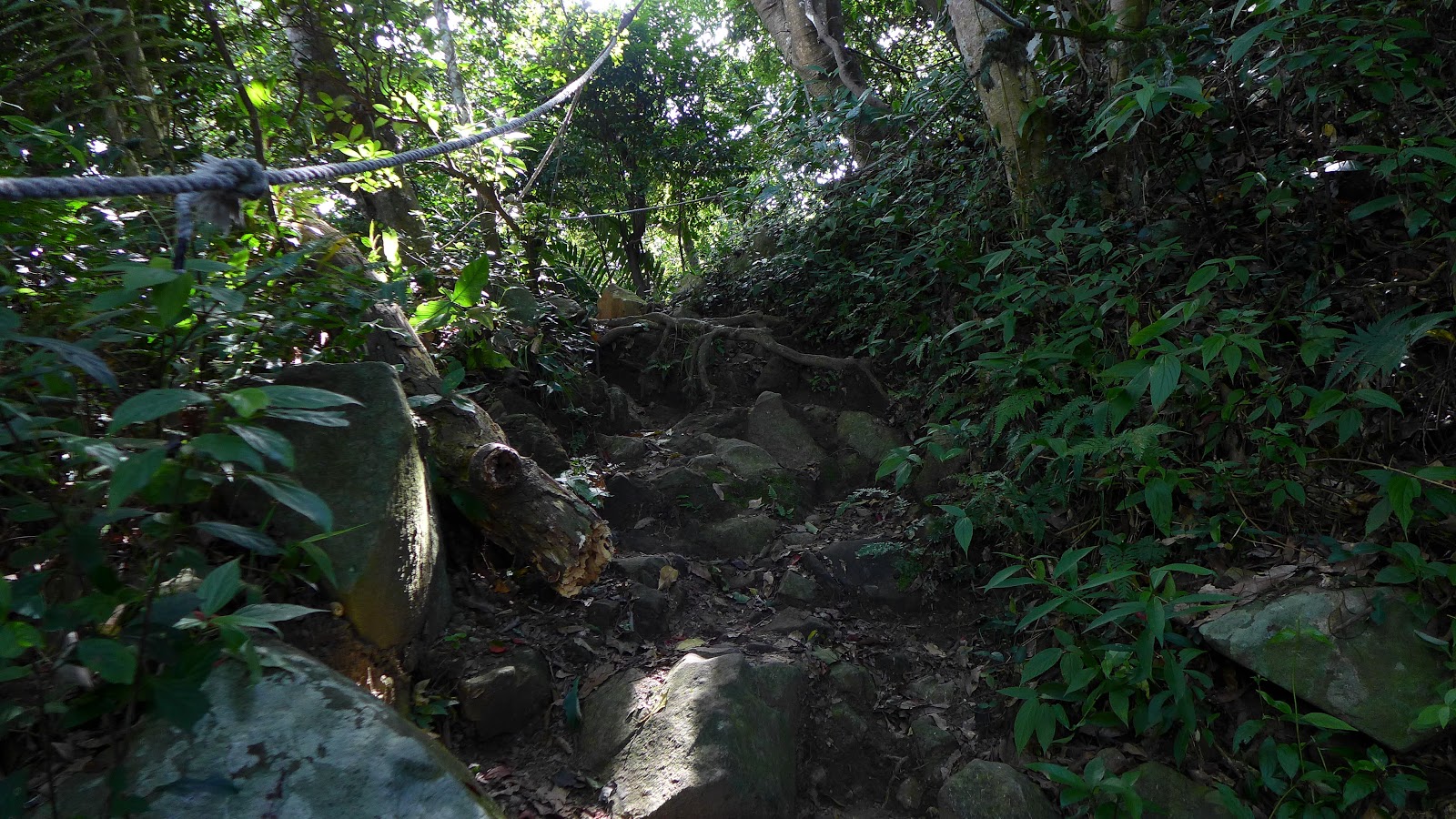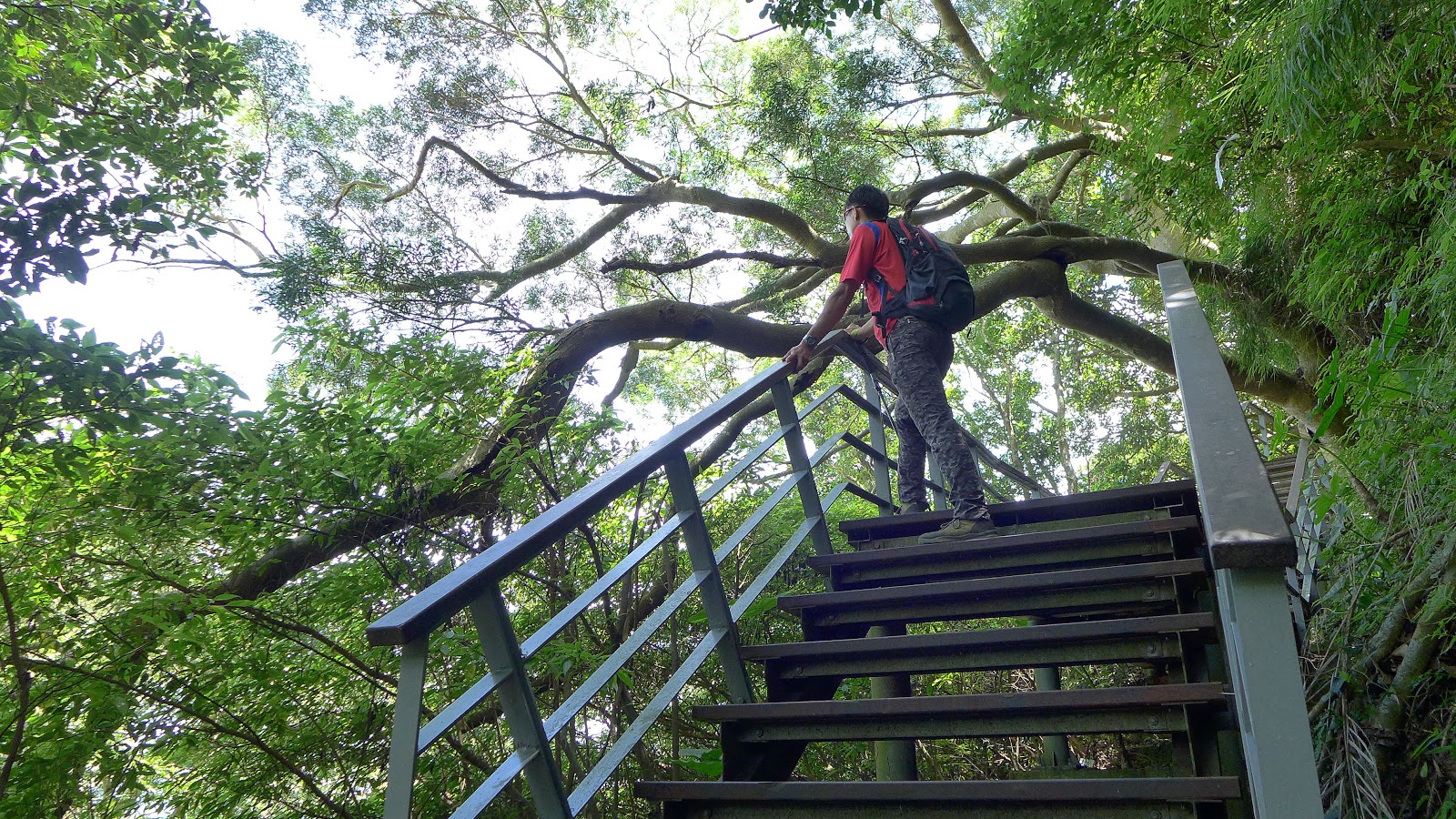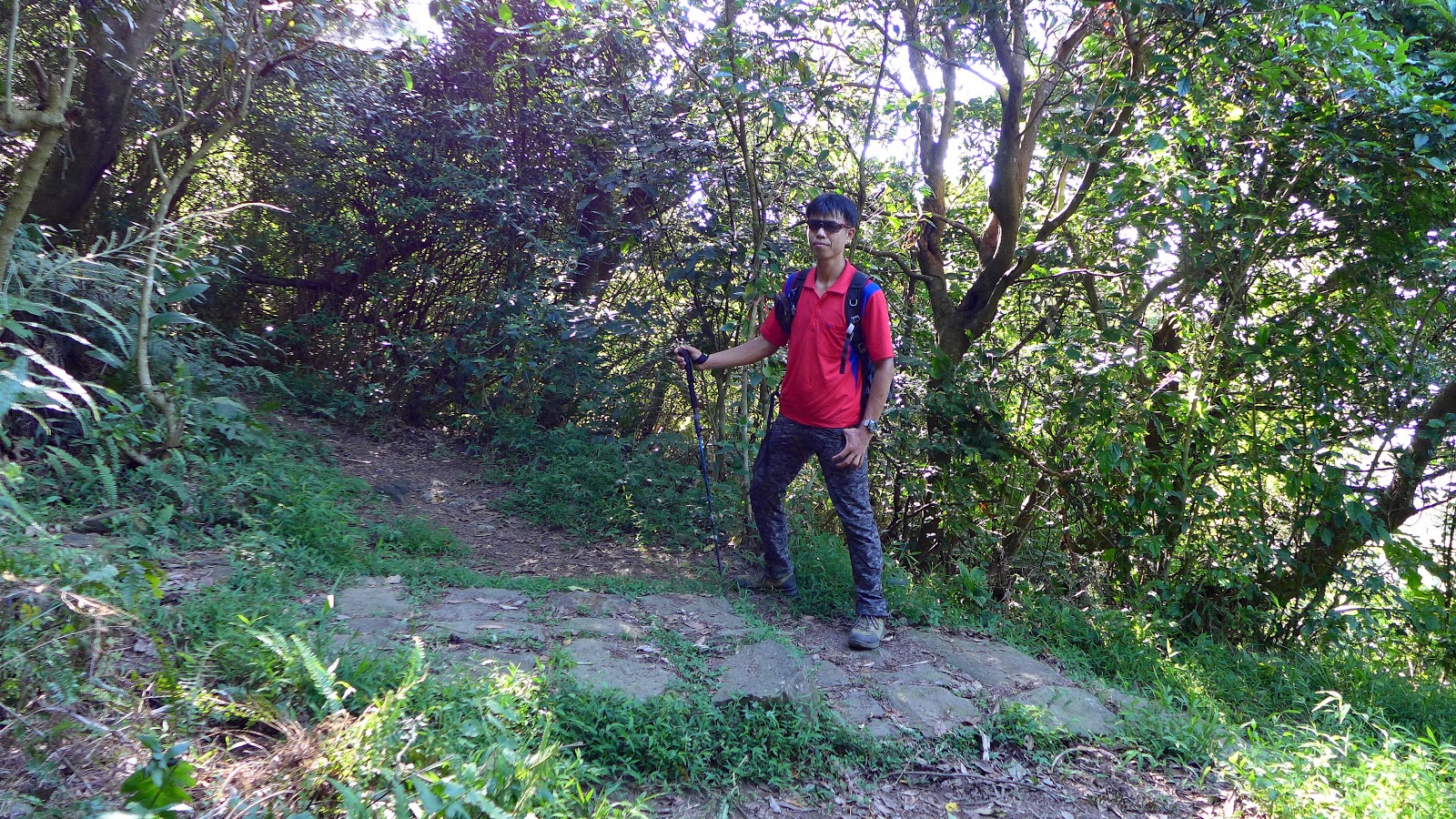通過寺廟後循路徑開始往上爬,有一處陡上切點不取續行石階路