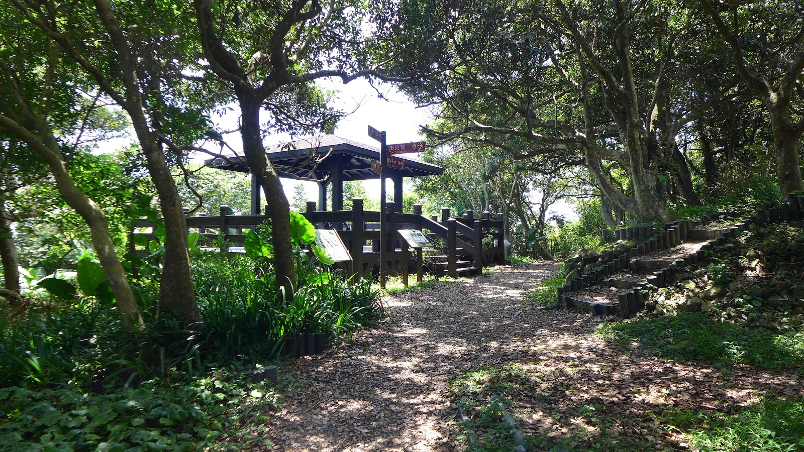有些陡上,但距離不長,不一會兒時間就到上方涼亭