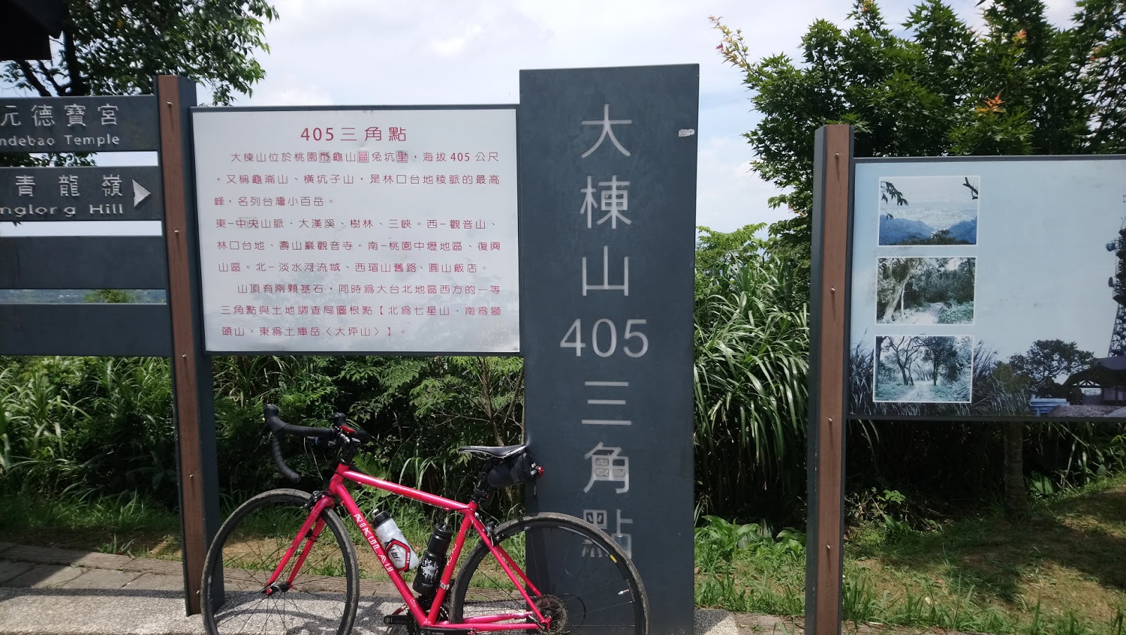 哎呀~ 原來大棟山到了,這裡的405表示海拔,看到有腳踏車在這表示是條可直接開車上來的三角點
