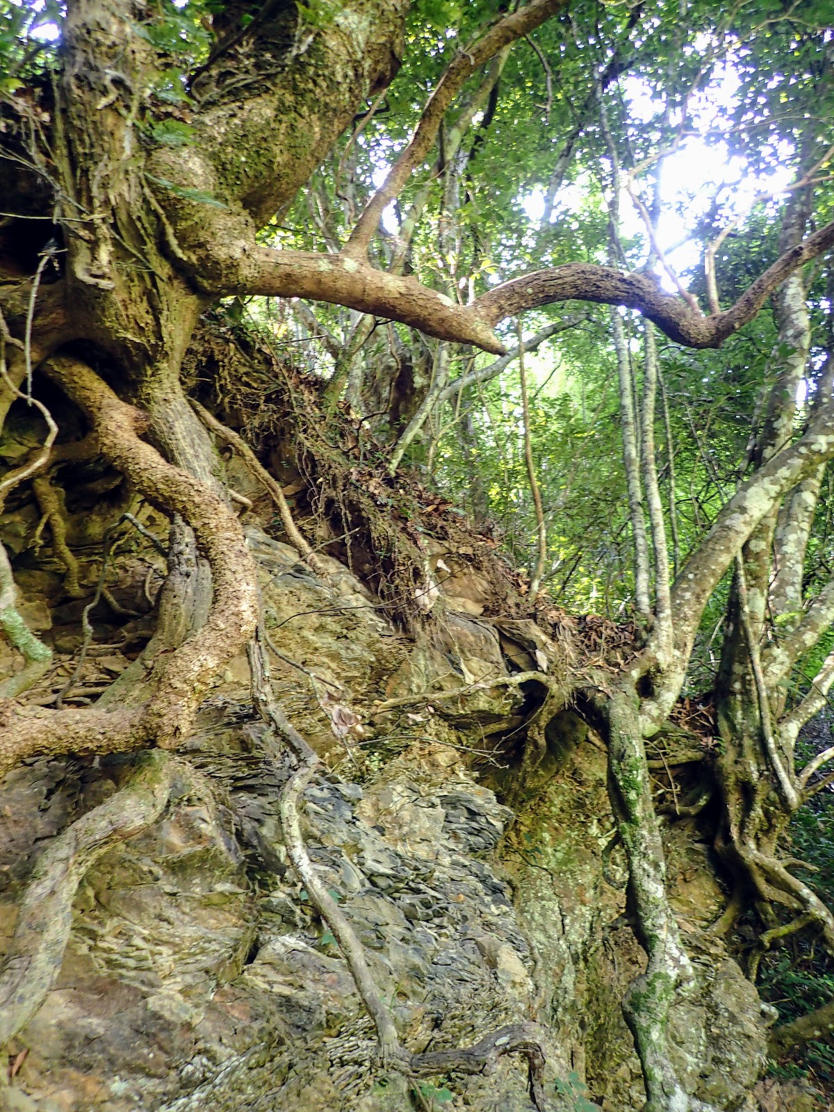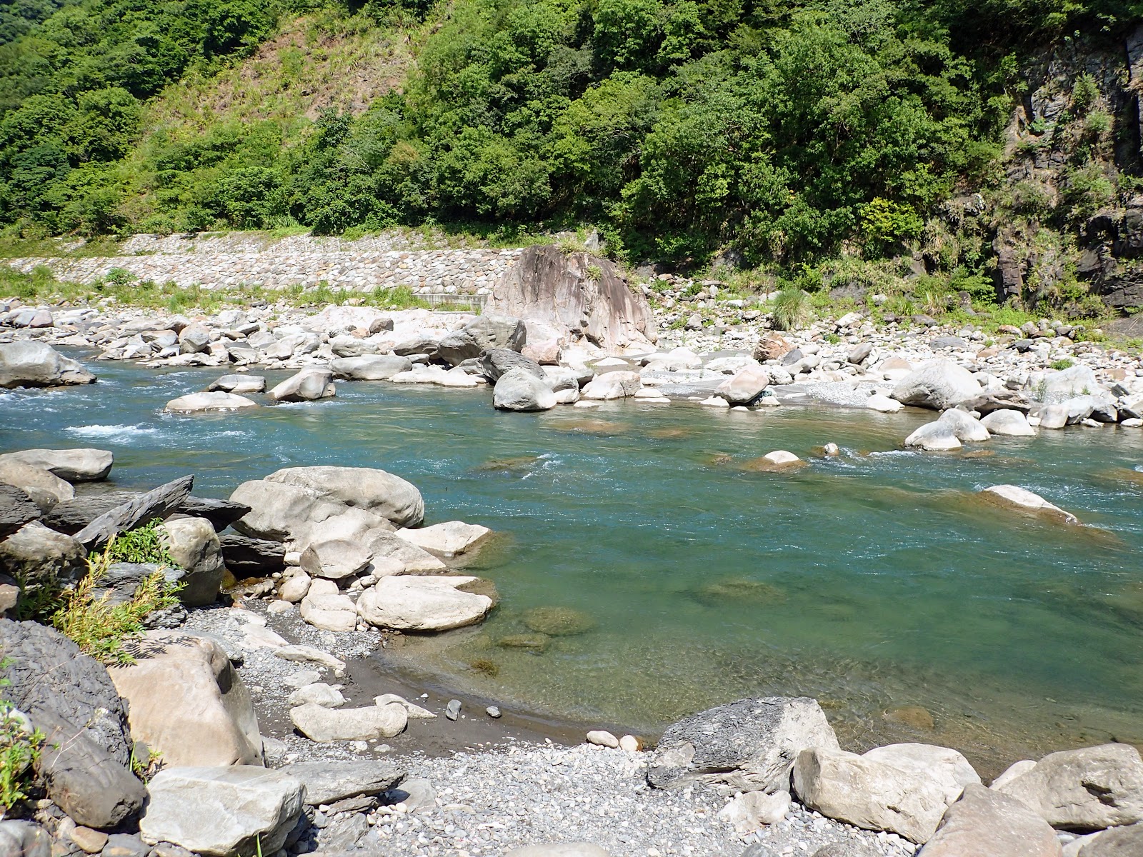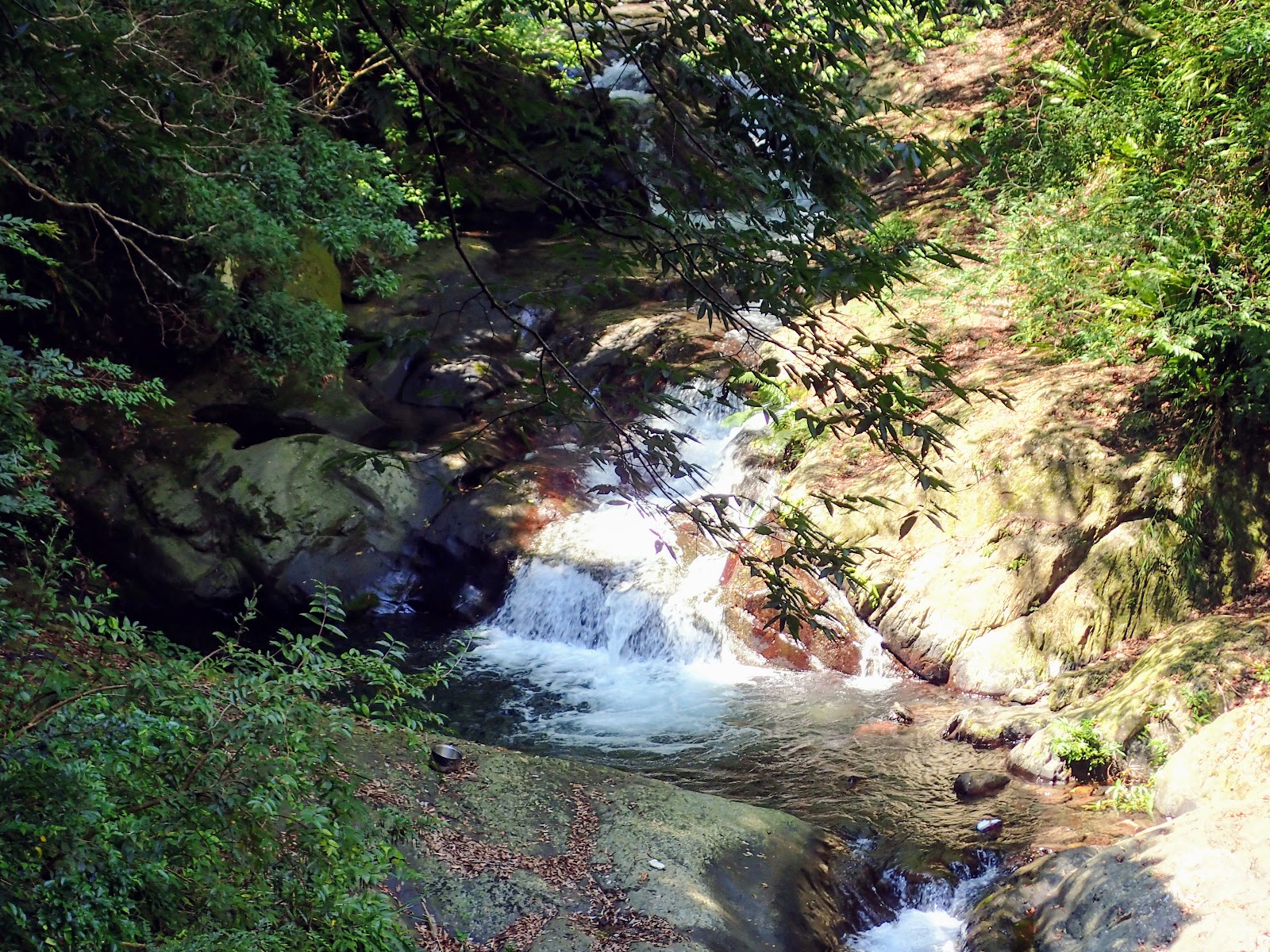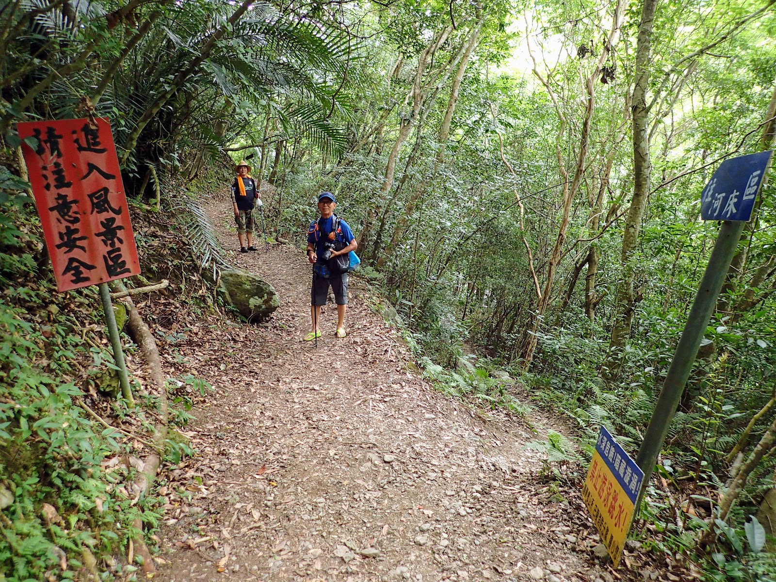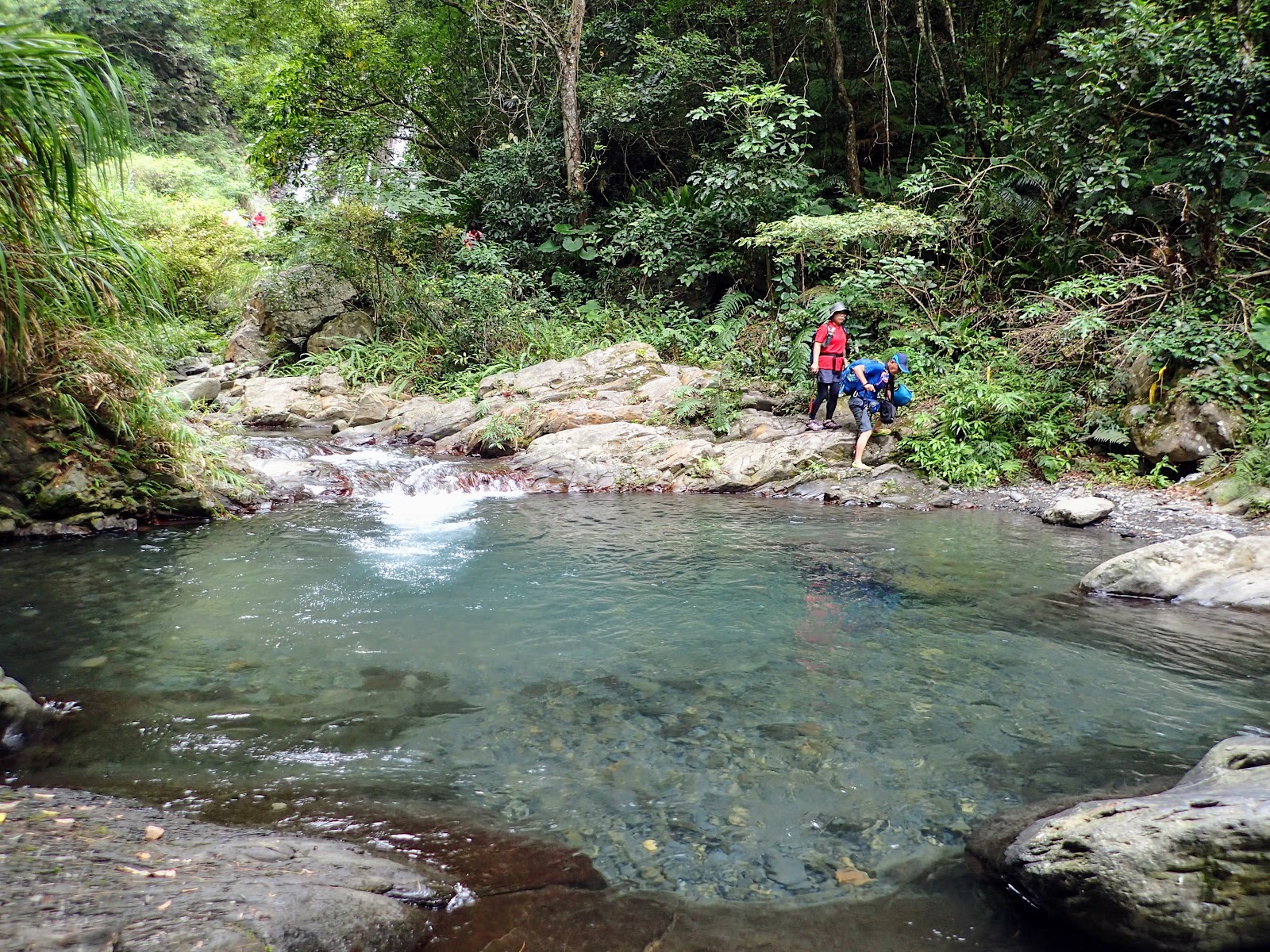 走到平緩路面的第一個叉路, 一旁立有至幽靈瀑布河床區, 頂部與水濂洞的指標, 很高興的往下走, 山路有點陡峭有些滑, 穿著溯溪鞋不難走, 哇, 淑芬妳看看, 這溪水是不是很優? 可是瀑布呢? 小櫻姐說, 不對, 走錯了要回步道口, 啊啊啊, 難得衝在前面說, 不過, 見識見識也好啦, 聽說這裡的河床區可以體驗天然划水道, 可惜沒能體驗..
