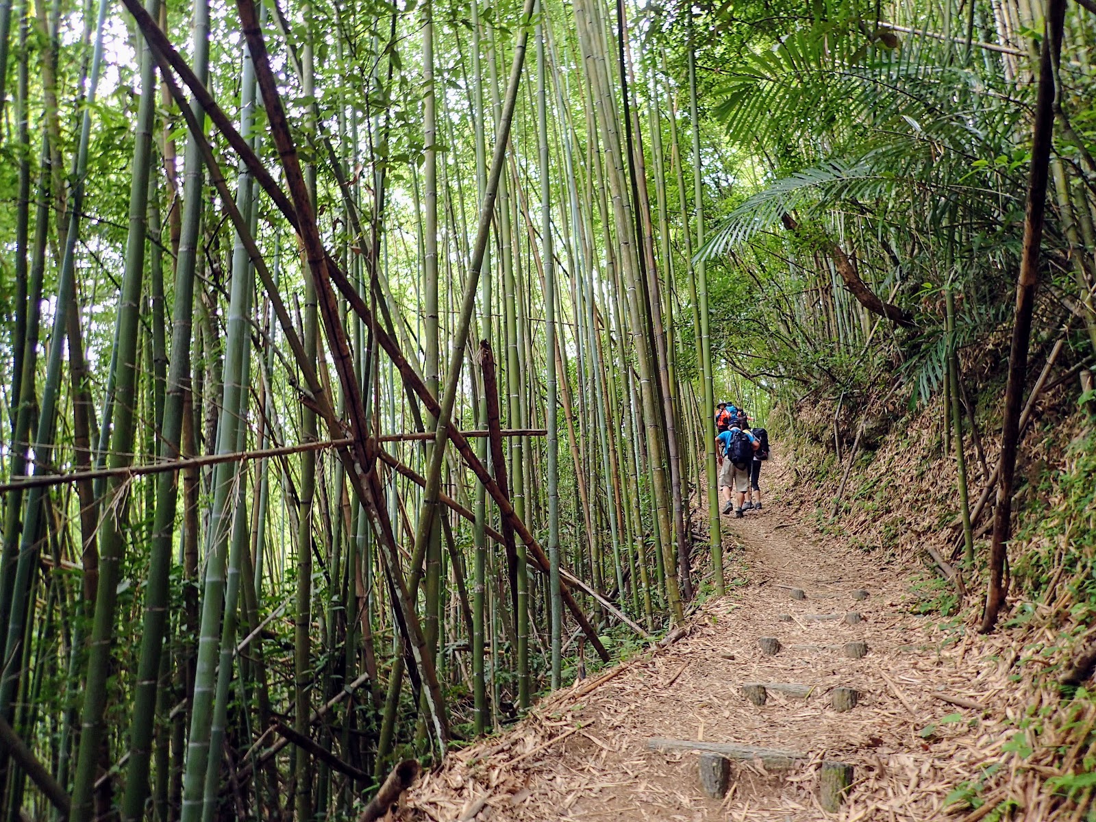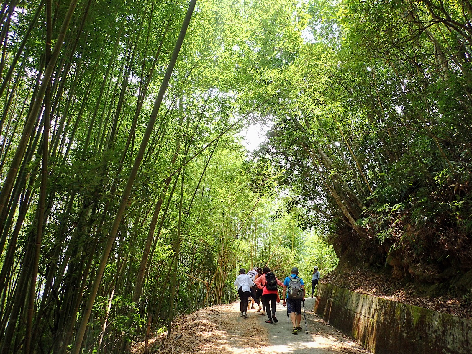 步道輕緩好走, 沿途翠綠竹林環繞, 涼爽宜人