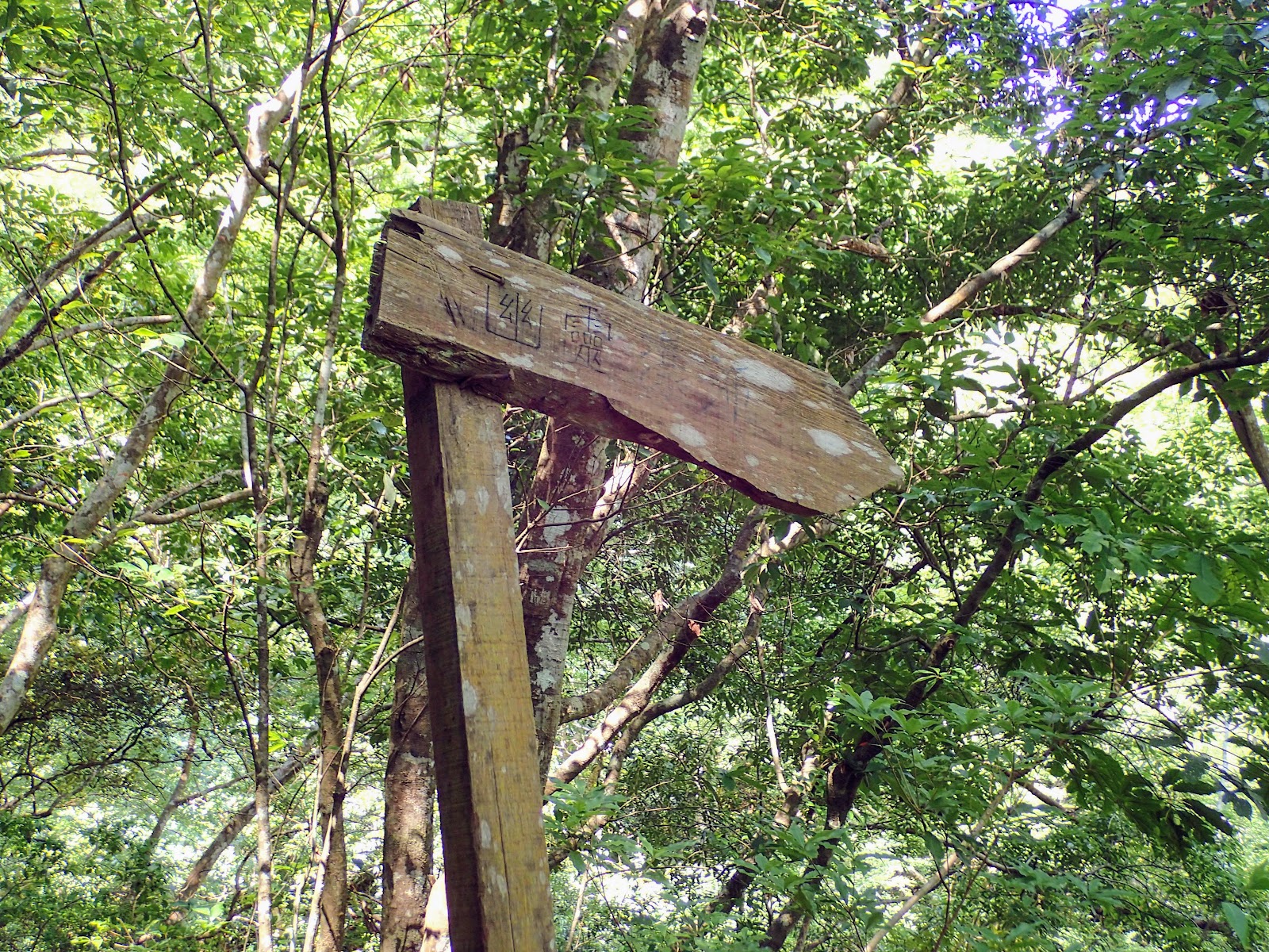 返回步道後繼續往前走, 見掛在枝頭上的指標, 箭頭指往水濂洞
