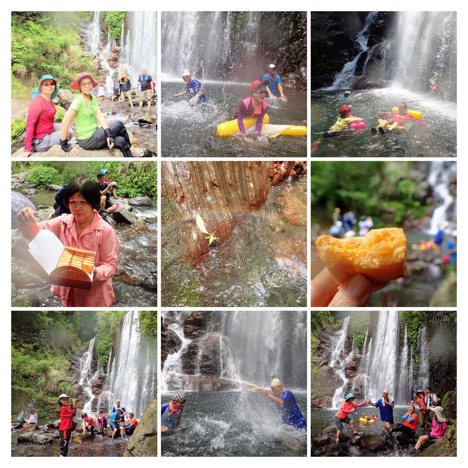 灰窯瀑布回去的路上, 杜隊長馬上在計劃著下周要去哪兒涼快? 跟小櫻姐邊走邊討論, 很快敲定了拉拉山幽靈瀑布, 這一宣布, 在場的爭相報名, 眼看20人中巴就要滿了, 這還猶豫甚麼呢? 趕緊+1, 順便幫淑芬報了名, 吼, 搞的好像在搶小老闆蘿蔔糕一樣, 瞬間秒殺真刺激! 回去後應眾要求改26人小可愛, 上次在瀑布下玩水好開心, 這次特別找出溯溪鞋及救生衣, 準備水裡玩個痛快