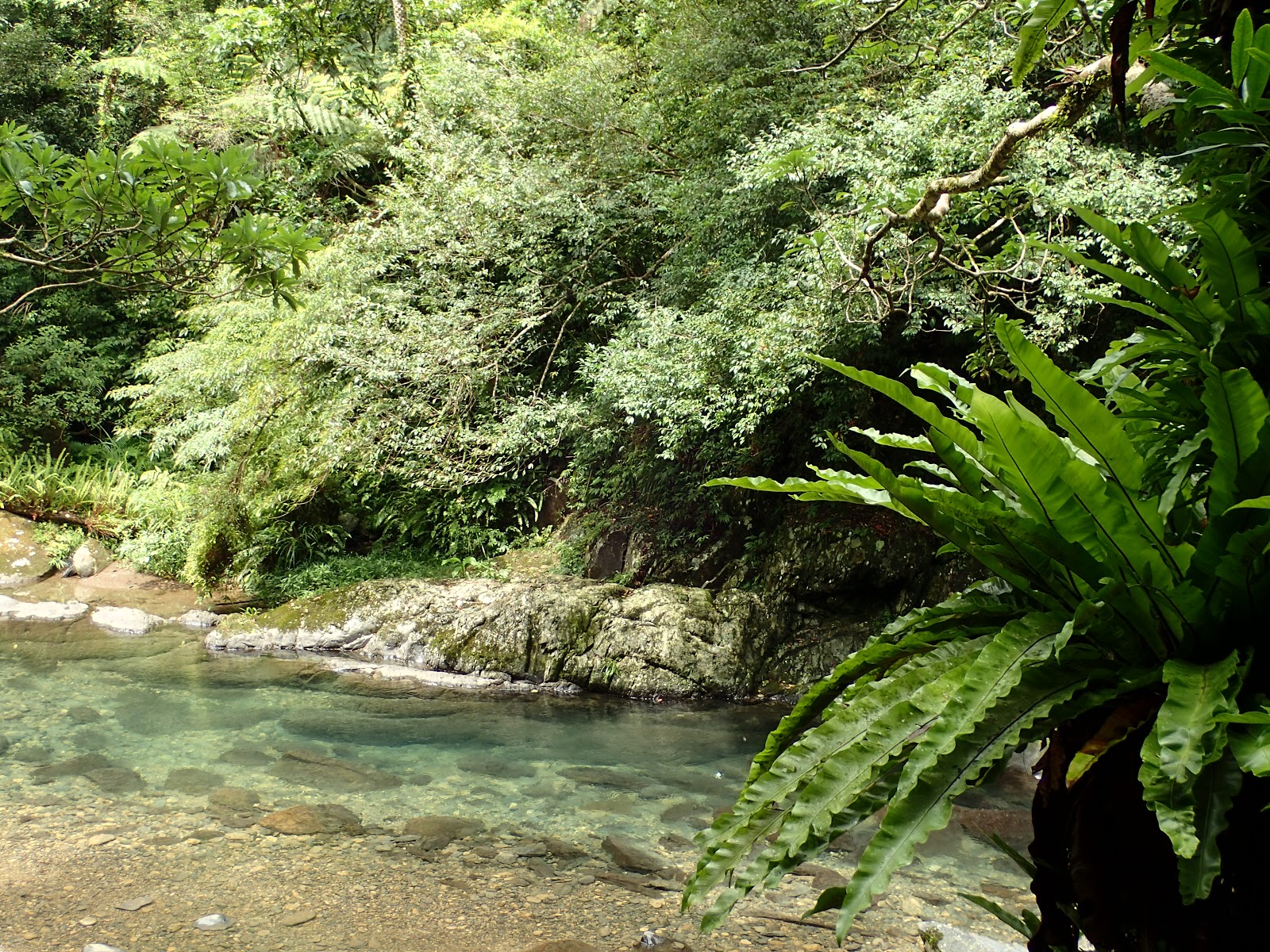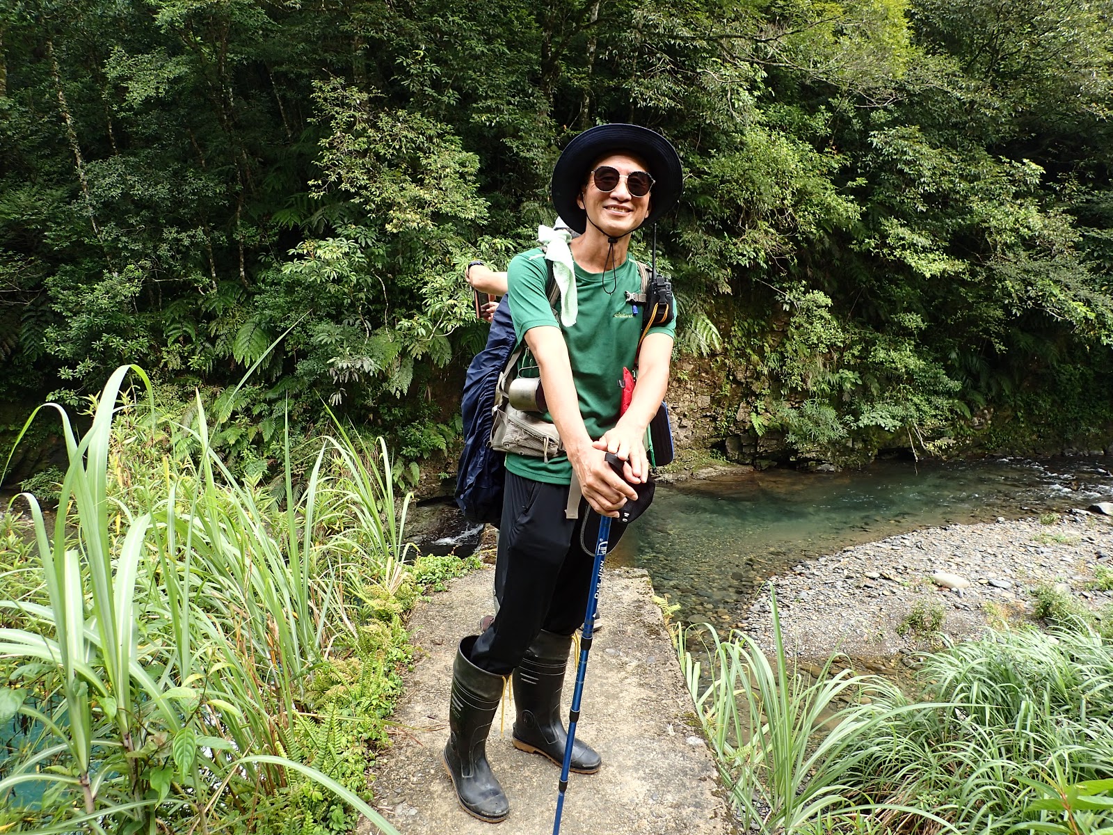 呵呵, 平路好走沒落隊, 兩位山友才剛走過, 休息後的行程沒跟, 留在此處休息泡茶玩水, 享受愜意人生