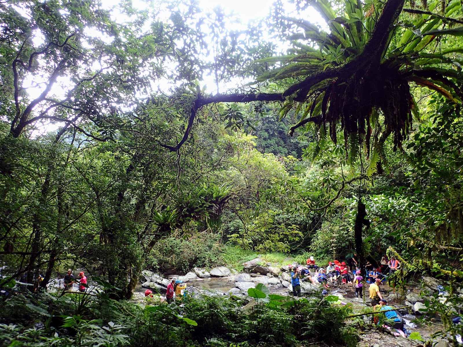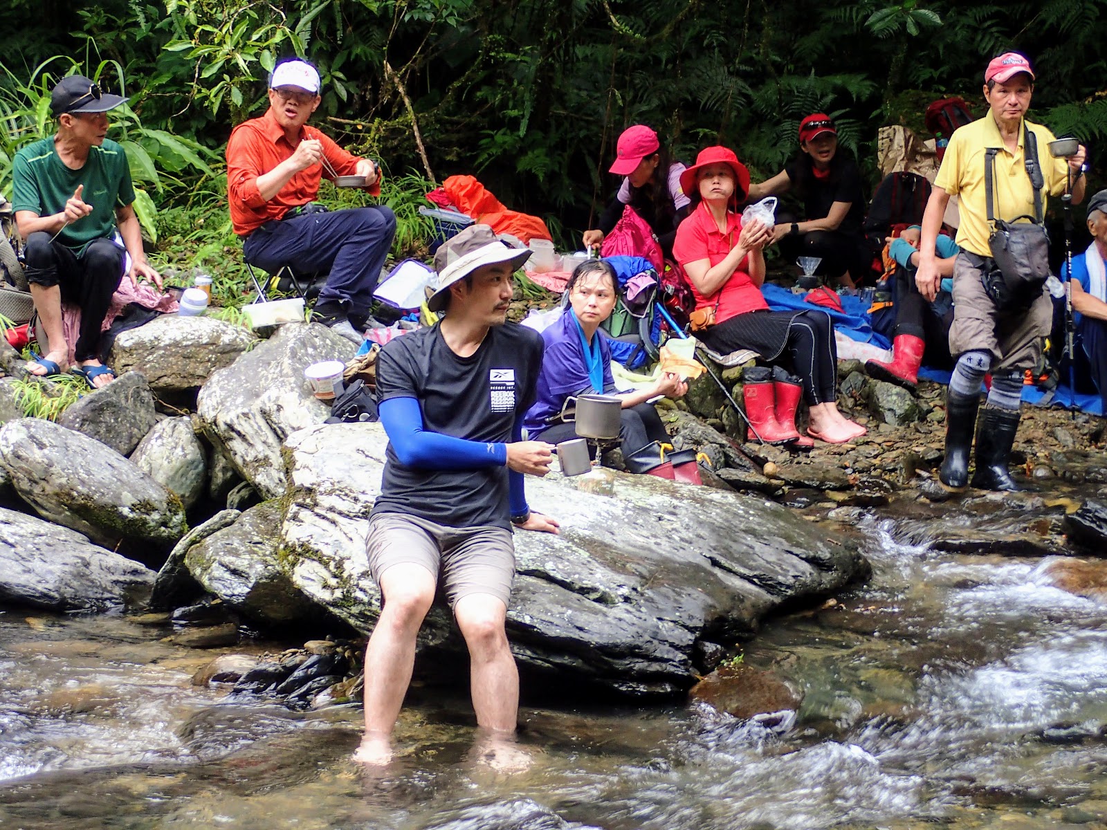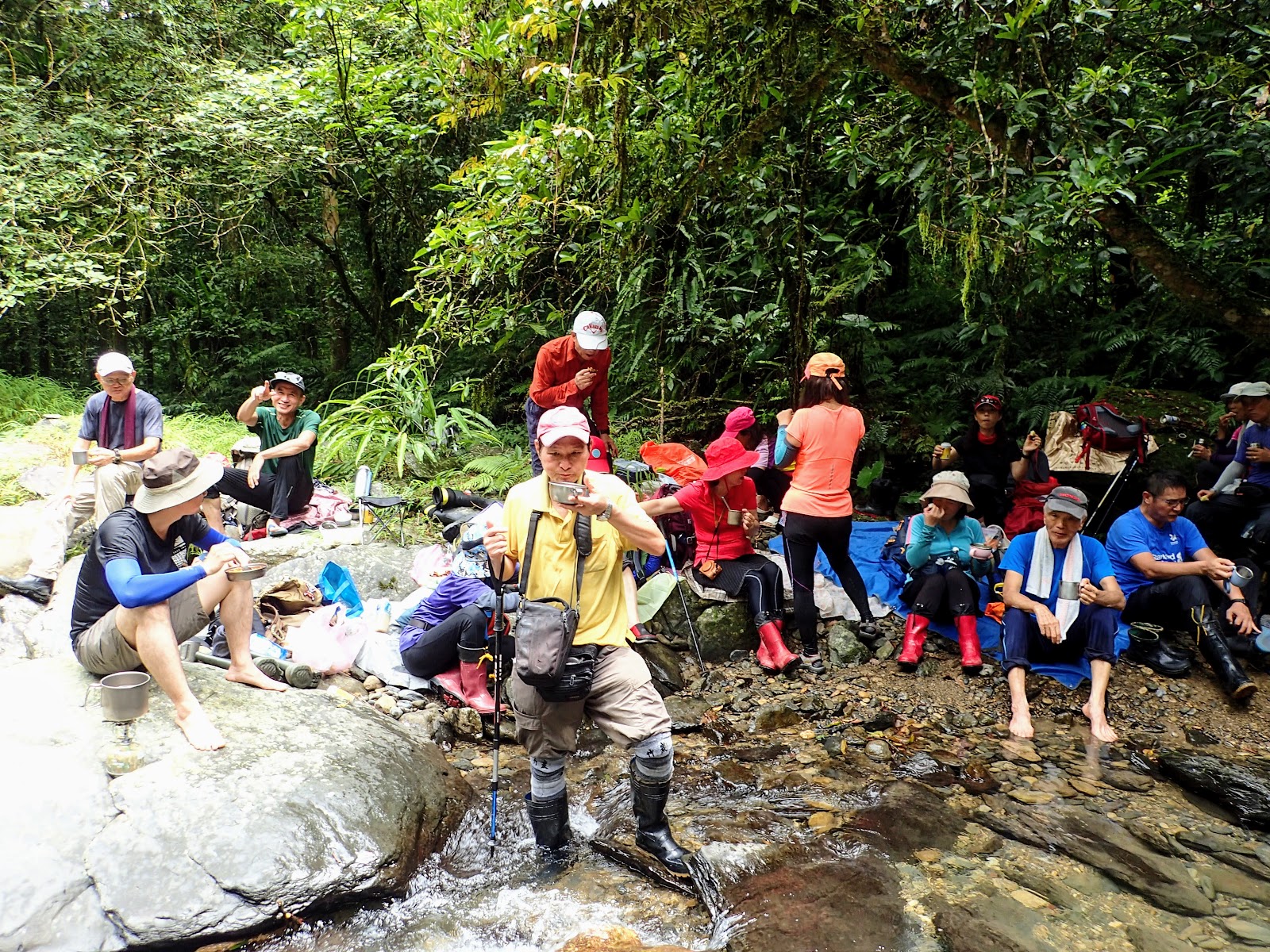 後來從春祥哥po文才知, 走完6.5K鞍部行程的11人回來時遇大雨溪水暴漲, 溪水湍急深及腰部, 靠著大家通力合作, 有驚無險安然渡過, 哇! 有這等事, 還好平安沒事, 在此呼籲並提醒大家, 山區常有午後雷陣雨, 暴雨時要趕緊上岸往高處走, 溪水暴漲非常快, 千萬不要逗留溪邊...