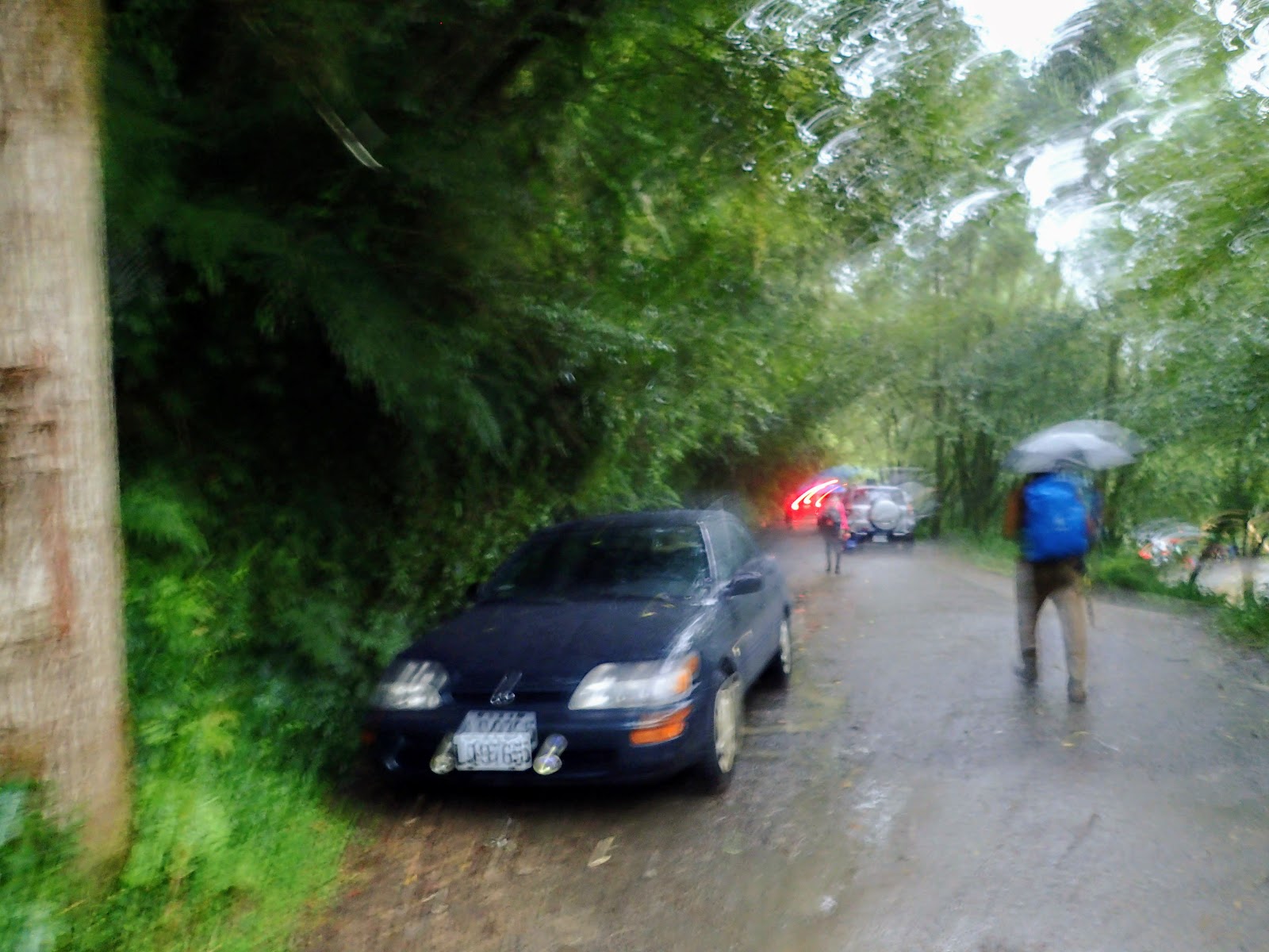1:20 回到停車處, 車廂後換掉全濕的衣服, 唉, 白換了, 換衣服時突來的暴雨又打濕了, 只能濕淋淋上車, 小陸哥真抱歉啊...還好昨天在拉拉山幽靈瀑布練就一身寒冰罩, 車上吹著冷氣也不覺得冷