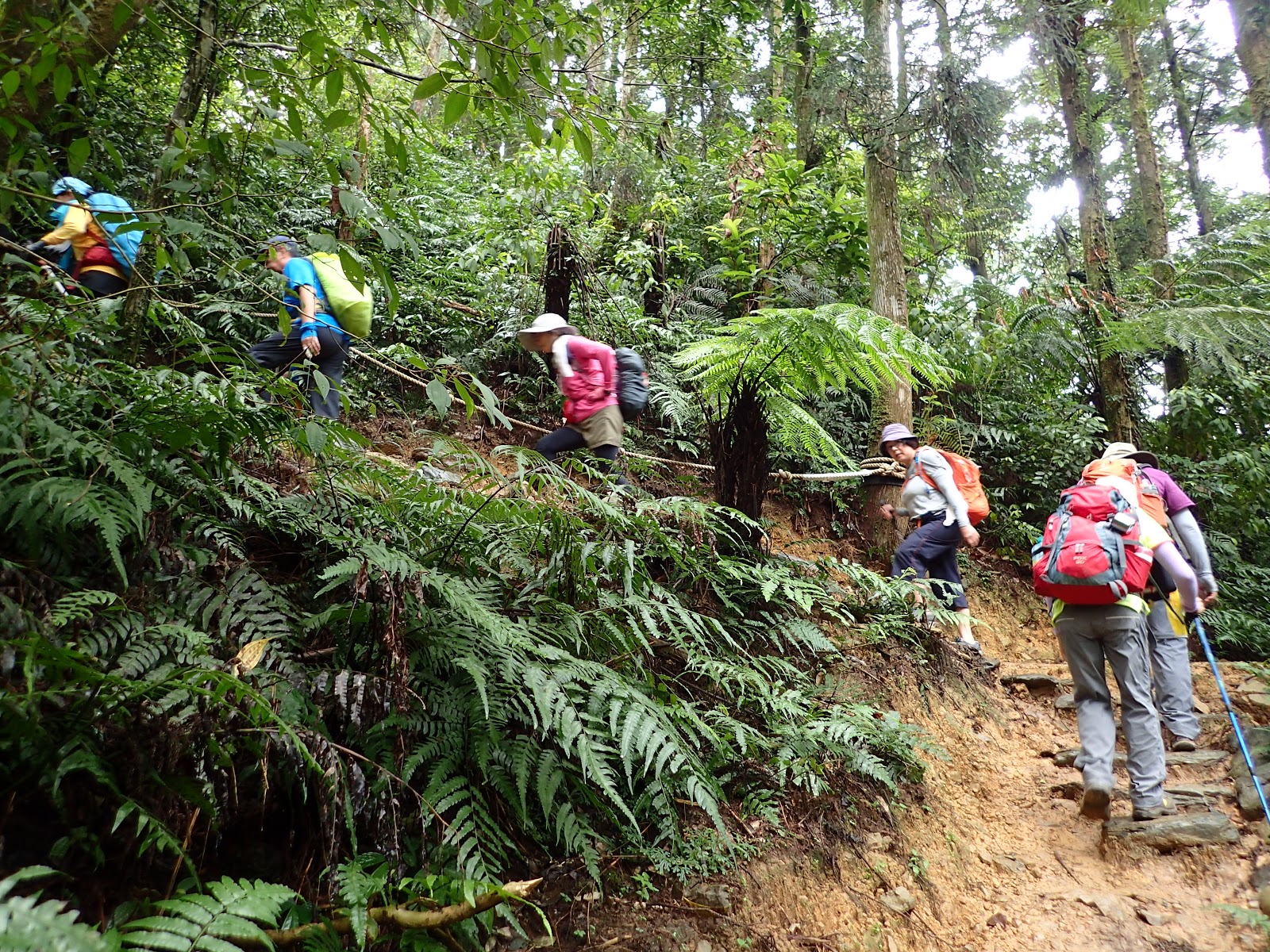 看到昔日一日遊好友揪共乘, 走恆青登山隊桶後越嶺古道時高興了一下, 啊, 正是想去一直沒去成的行程, 可惜已滿車, 當時有幾位也想去苦無車手, 此時鄉親小鍾哥志願跳出來, 因而補上小陸哥的車, 兩車滿, 哈哈, 終能一償宿願, 這一定要給鄉親拍拍手, 謝謝啦! 桶後越嶺, 終於成行開心灑花, 不過也有點擔心, 印象中周四的恆青隊都是健腳, 走很快怕跟不上給鄉親漏氣, 不管了, 馬上就要跟琴妹走大霸群峰了, 要加減練啊...