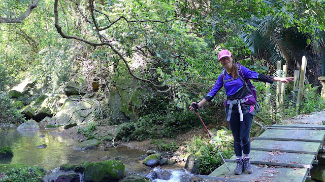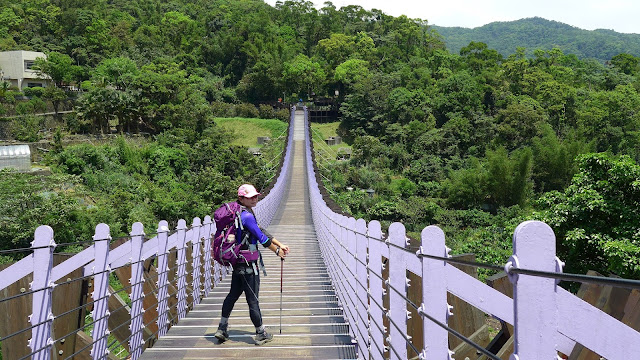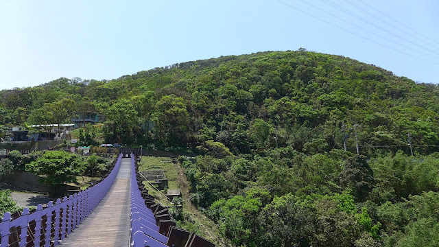 原路退到吊橋叉路,前往白石湖吊橋,紫色的橋身為其特色,設計上跟天梯吊橋有點類似,運氣好到的時候,沒什麼人。