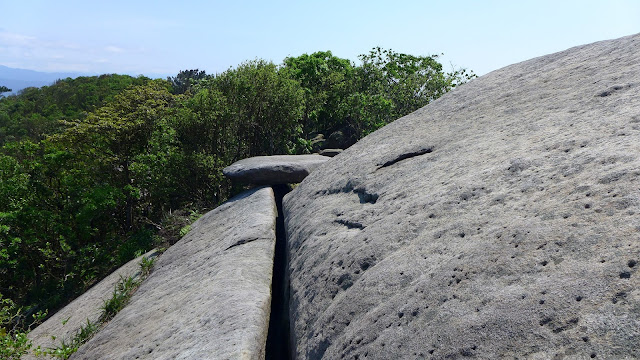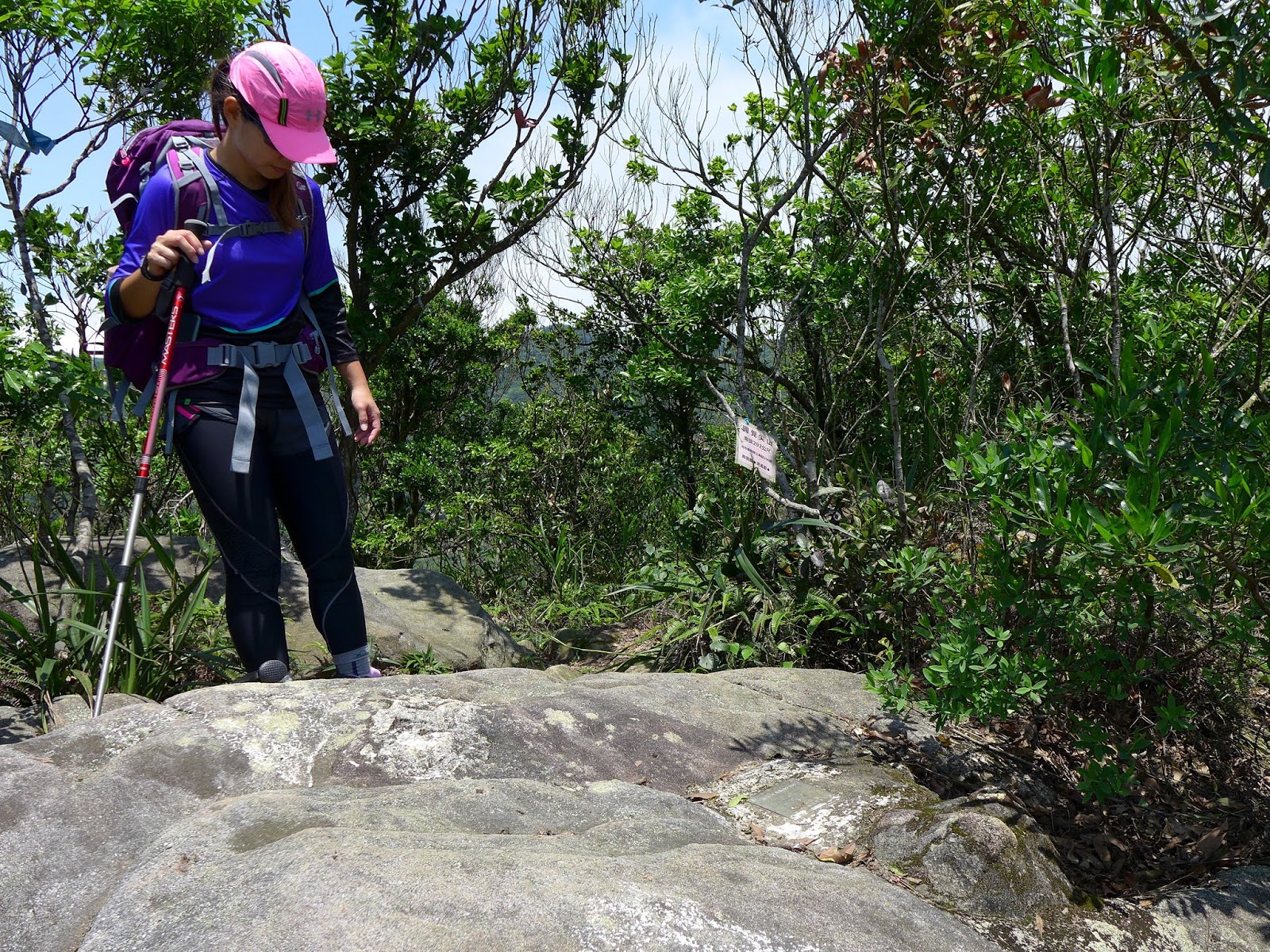 遇十字叉路,右往龍船岩,左往開眼山、白石湖山,直往石坎山,原本照計劃會從開眼山那走到這,往龍船岩一小段岩稜徑。