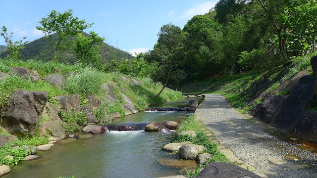進入後沿溪畔步道前往鯉魚山步道,溪畔步道兩側河岸加以整治後,除原溪溝環境外,兼具排洪與景觀休閒的功用。