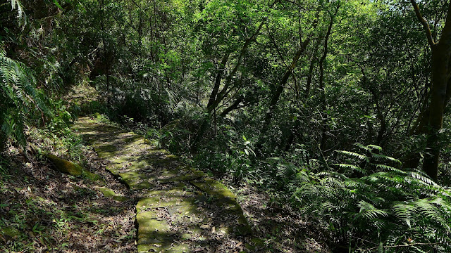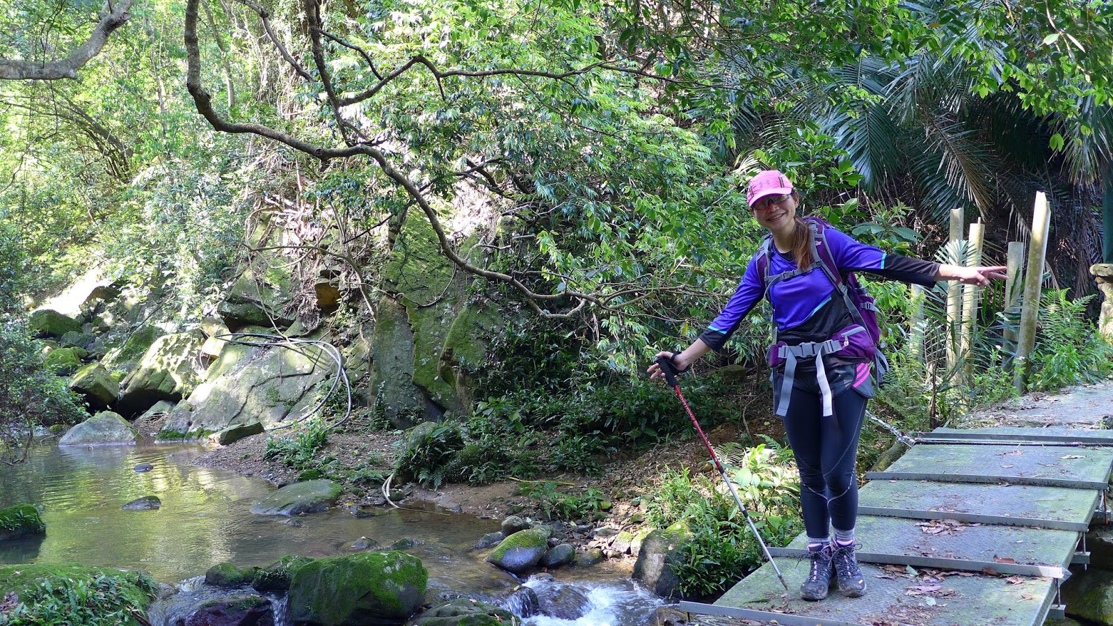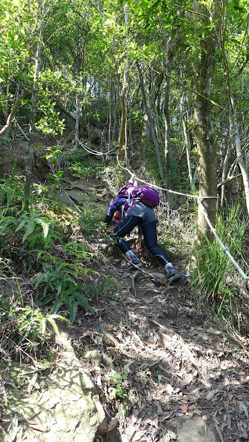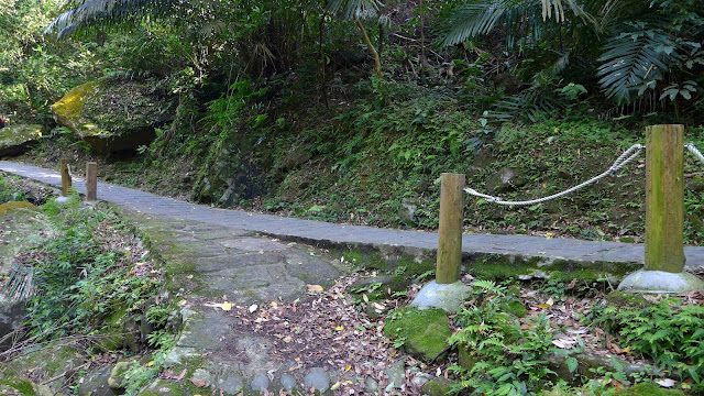離開龍船岩不久,開始超陡下路段,還挺長的,一口氣下到溪溝路,最後出來接上圓覺瀑布步道,往左回到早上登鯉魚山的叉路,先往右去瀑布。