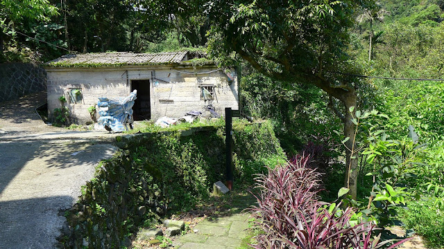 左前方有山徑往五指山、白石湖山,原本計劃從那上白石湖山再下龍船岩,時間看一看有點趕,直接續走右側馬路抄近路往龍船岩,走到路底沒路經民宅小徑到入口。
