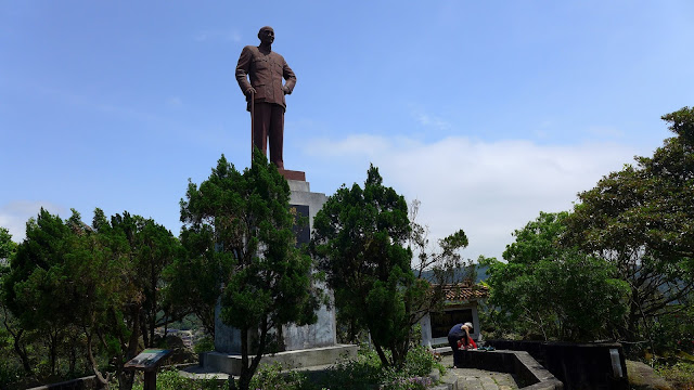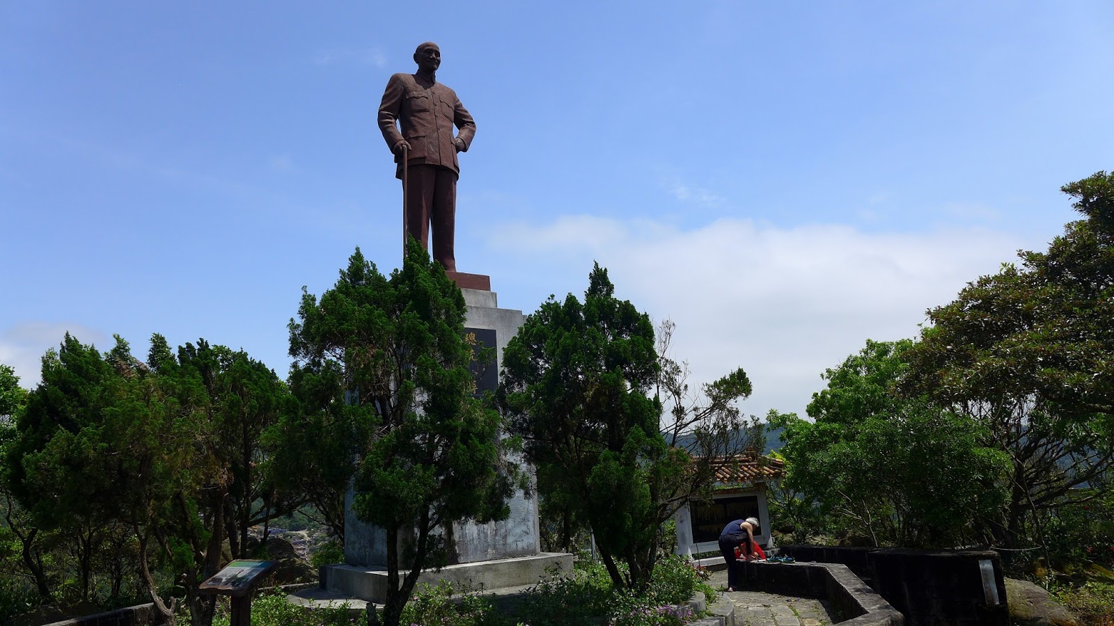 往忠勇山前進,經白石湖吊橋叉路不取,等等還會原路走下來,來到打印亭看到蔣公銅像,表示山頂到囉,山頂展望沒很好,不過有二處小岩稜可向外觀賞五指山脈,山頂做第2次大休。