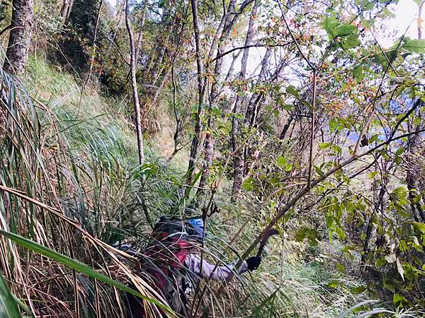 最後駐在所後續下稜線走至河床,途中在崩壁芒草堆找路時,遇到虎頭蜂,隊友不慎被叮咬,所幸隊友處置後續觀無大礙。