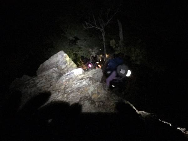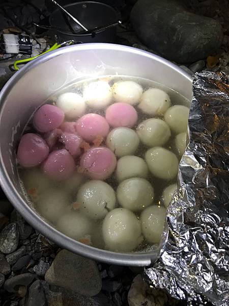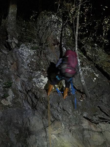 到河床上稜線垂降,雖已摸黑,但可能因可以開始休息了反而精神亢奮,就地紮營生火、糜爛吃食、過冬至。