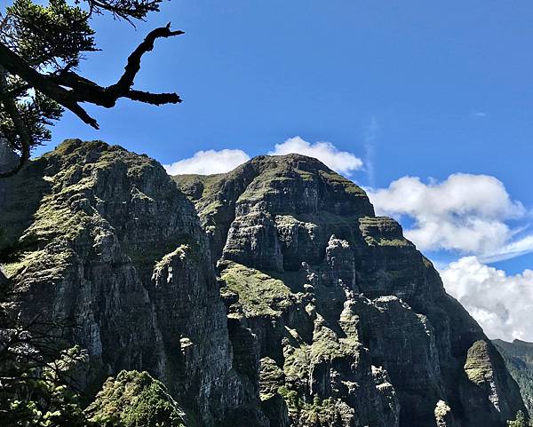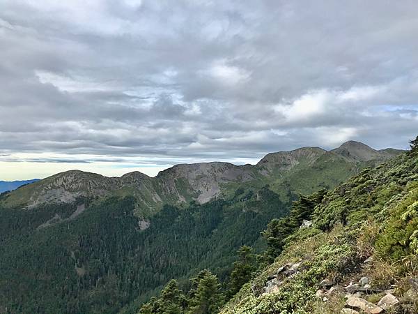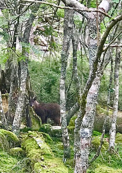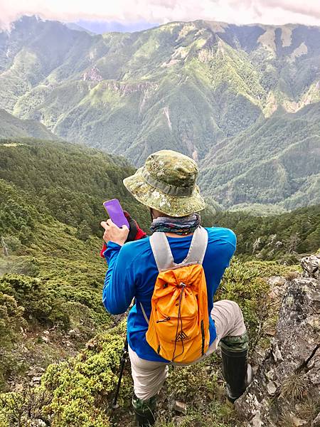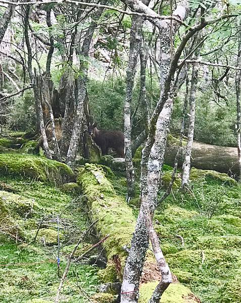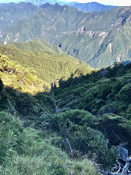 ❤️❤️❤️前往甘木林山的地形是橫切一座又一座的石壁山頭,不用走山頭稜線,一直腰繞著山腹走即可,視植物密度及崩塌處選擇高繞或更下腰繞走,路程的景致很壯觀,還看到山羌跳躍跑掉,如果開滿杜鵑更是宜人,原本懶的折返,想重裝到甘木林山後,直陡下到369,不過好在我們也沒想不開,累,輕裝最實在,反正最後走出黑森林也很快。