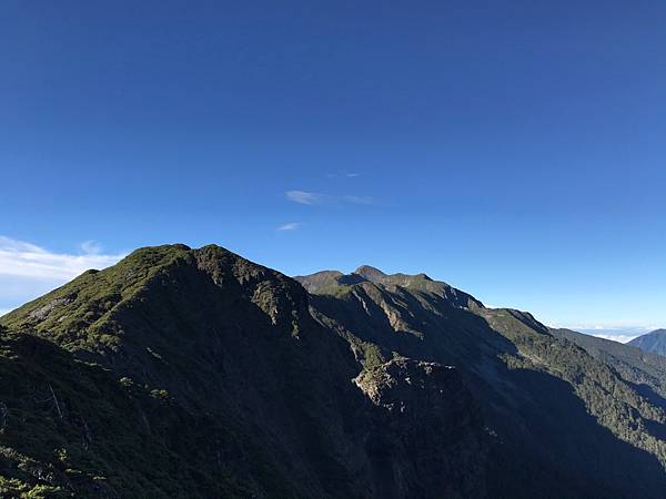 ?0744拍完照後出發,續走到雲達卡山前回望北峰,預計林專山回程後再來北峰看夕陽