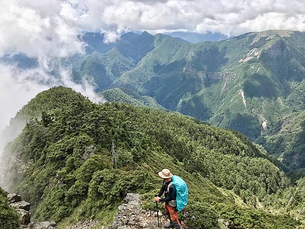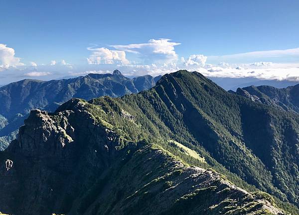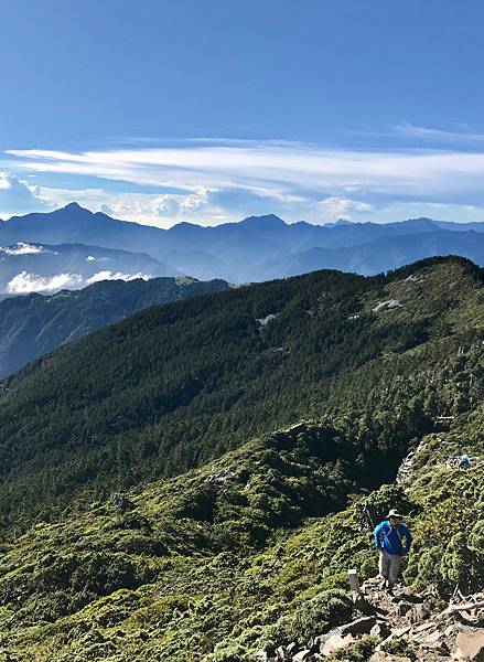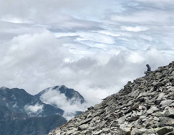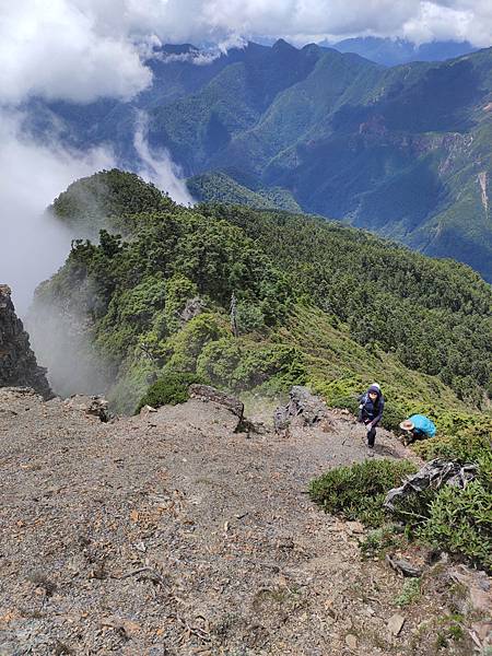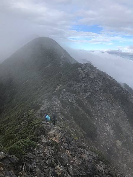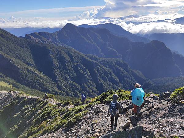 ❤️❤️切上稜線回頭時,我被此景煞到,太美太壯觀了,是我此路線中最愛的一幅山照: 你有看到3個人嗎? 沒看到就是視力or眼睛業障問題喔