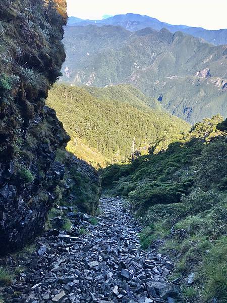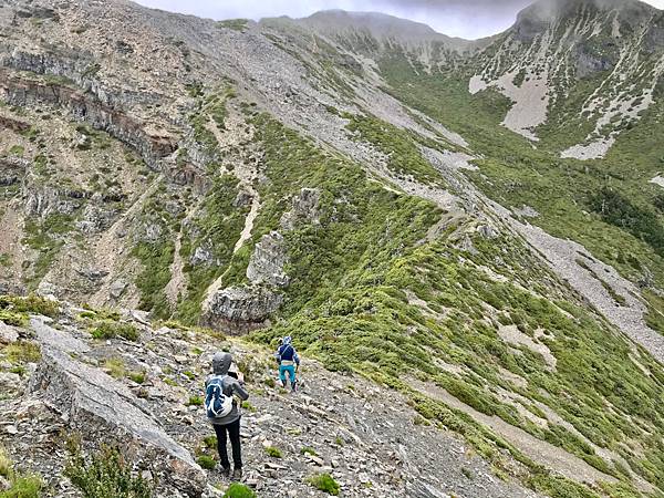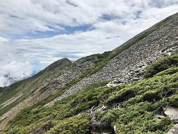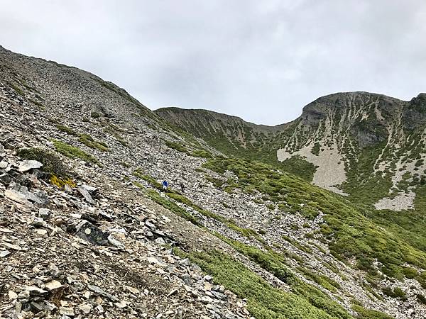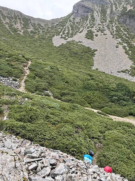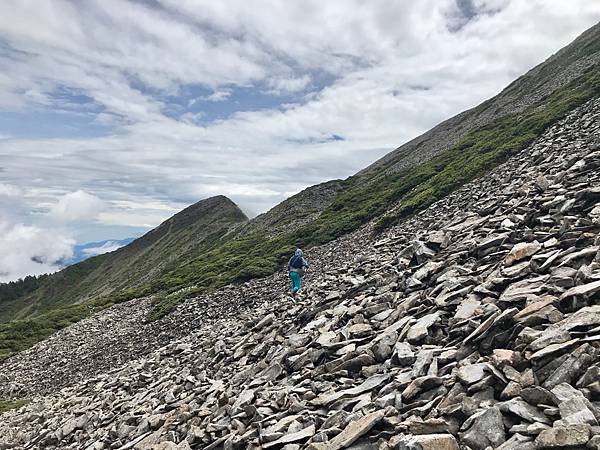 ?下到碎石坡這裡,準備開始轉左腰繞到雲達卡山下方的稜線