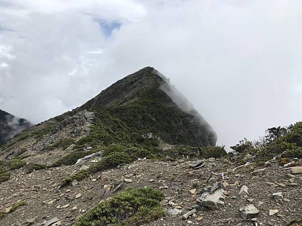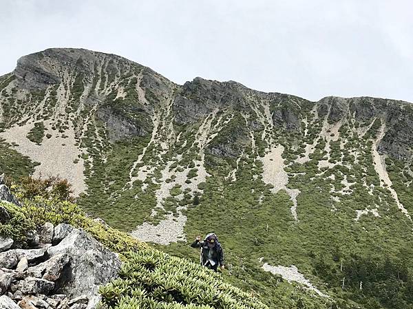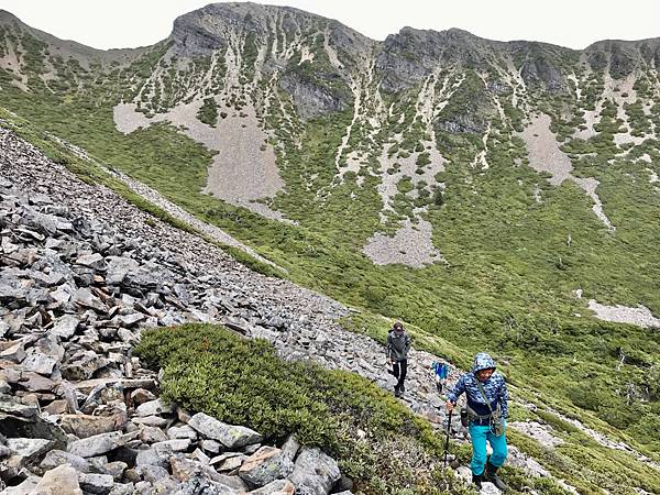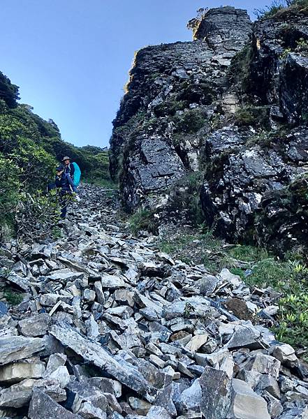 ?上雪北碎石坡,往上仰望看不到藍天的鞍部,可惜。(為虎哥可惜,因為我們都看過了哈哈哈哈哈哈哈哈哈哈哈)