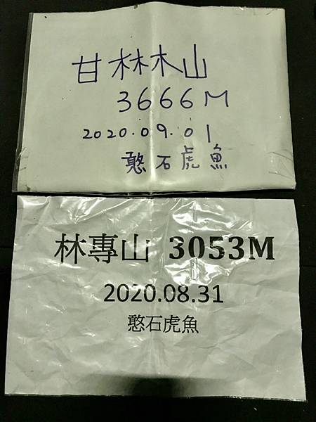 ?在此隆重介紹下,我自製的三角點牌牌: 但是兩張都沒有派上用場!! 林專山因為天氣不佳而撤退; 甘木林山因為輕裝過去時忘記帶了......傻眼豬。BTW寫甘木林山牌時,因為忘記是叫「甘木林」還是「甘林木」了,而當時「甘林」又已經先寫上去了.....就當成甘木木木山吧XDD