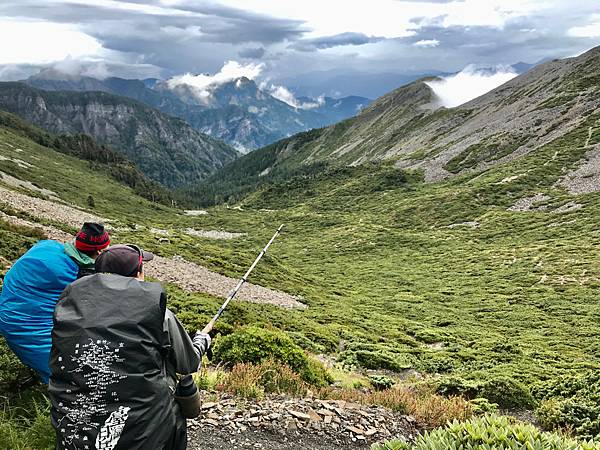 ?這時大概是3250m吧,我那時肖肖一直認為林專山就在前面那個山頭,所以一路都下的很開心,結果就在我拍影片講時立馬被隊友們糾正,那時不信,還理直氣壯的說「你來看」,然後就被打臉了XDD,紅紅的滾燙超丟臉的XDD,還要下300m啦TT