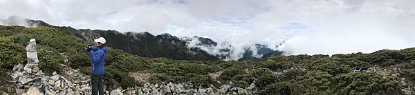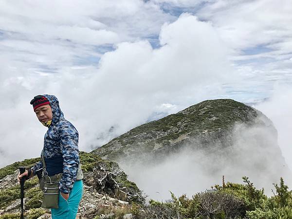 ❤️❤️❤️1119甘木林山,開勳到達,一路慢慢走過來,大約走1小時,展望不錯,雖然時有霧雲,但對面的聖稜線都可看得很清楚