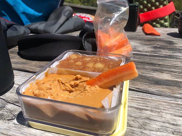 ?1050 369,在此休息吃午餐,魚文的馬兒兔兒飲食法: 紅蘿蔔+蘋果醬+花生醬,好粗好粗