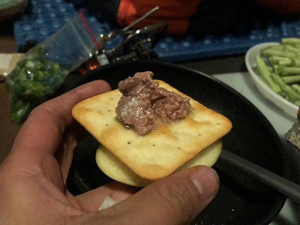 ?-石頭是提供: 臘肉、冷盤(鱈魚肝+蘋果片+蘇打餅乾)