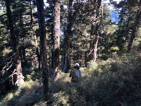 ?繼續一路的下稜線、變更稜線,除了鑽茂密的箭竹林,沿途的林相也很美,只是上坡的時候就只會覺得累了