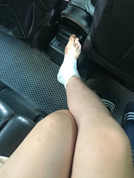 ?But! But! 我在最後1.2k跑跳過程,給他一拐! 瞬間腳踝痛到不能走了,立馬臥倒在旁邊假裝休息,讓後方別隊的快腳先走,等到我的夥伴們來立馬哇哇大叫TT,痛死豬了இдஇ இдஇ ,然後在他們的關懷的愛與笑聲中,使用著他們的雙杖慢慢的走QQ,還好沒有走到17-18點才出登山口