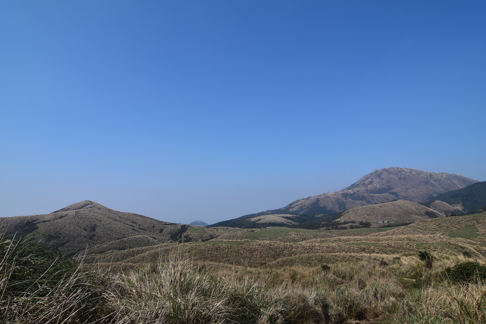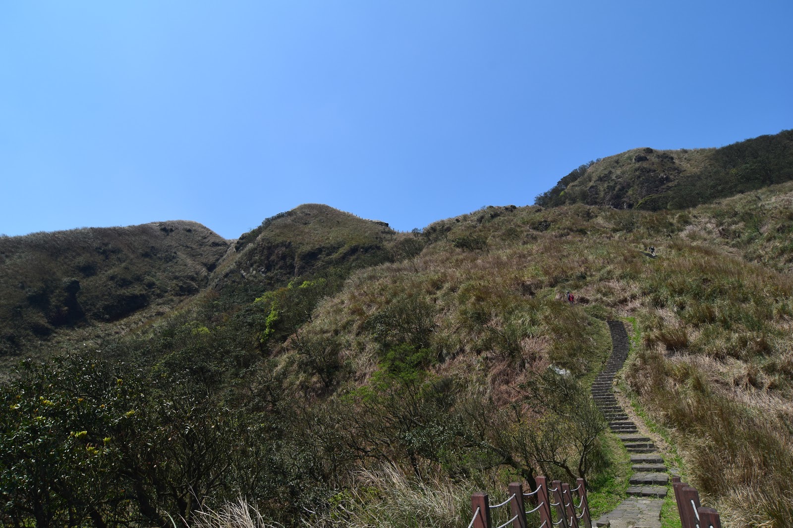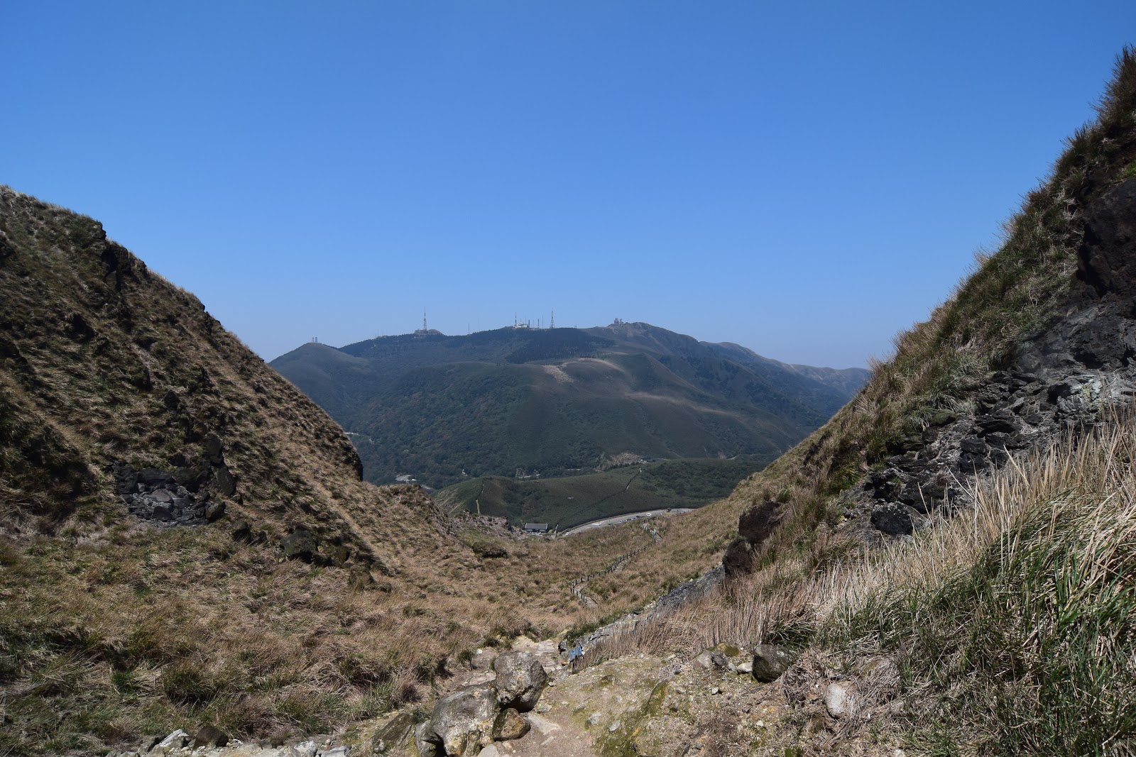 -翻過前面的石梯嶺,就能看到後方一遍枯黃的七星山。
