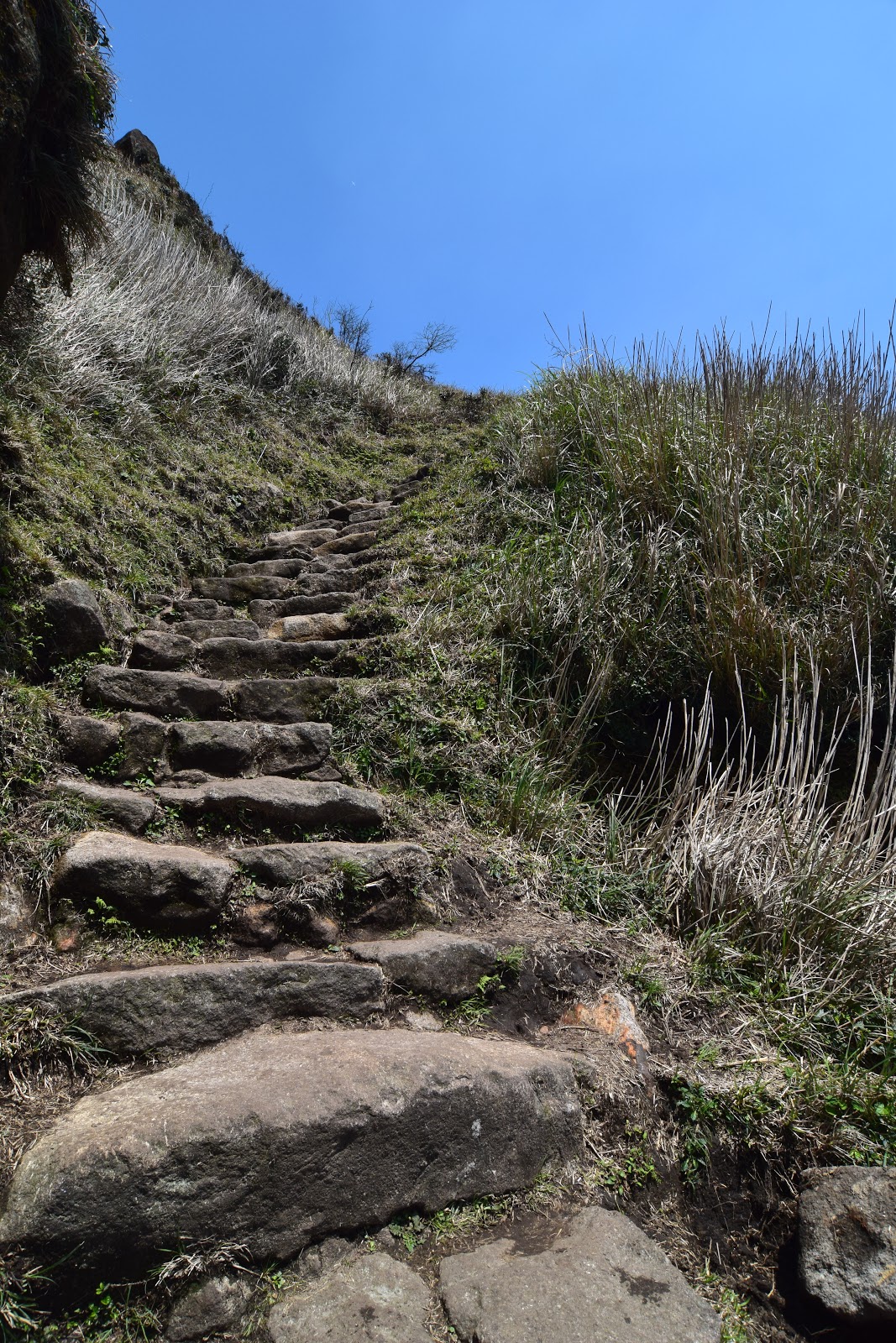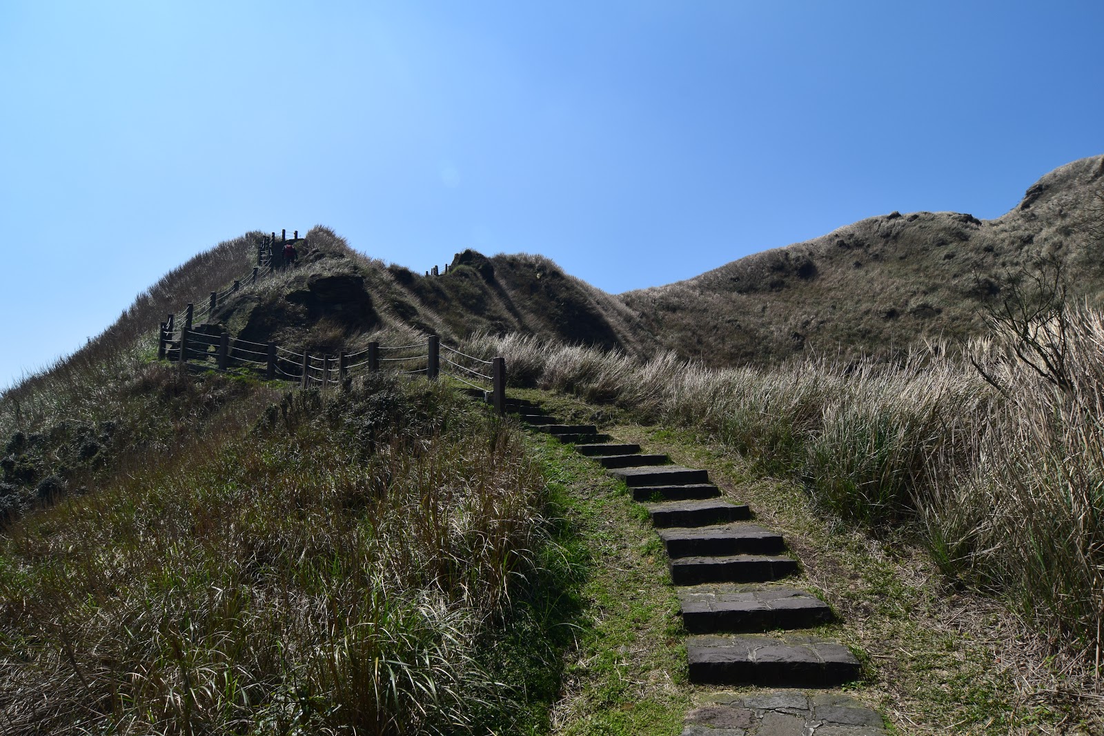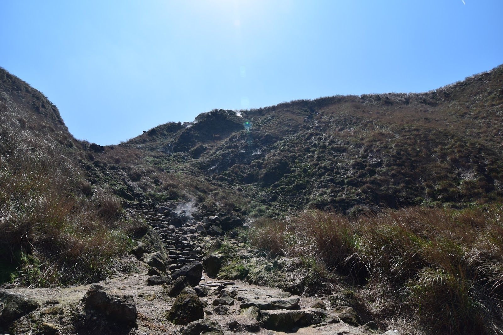 -翻過前面的石梯嶺,就能看到後方一遍枯黃的七星山。