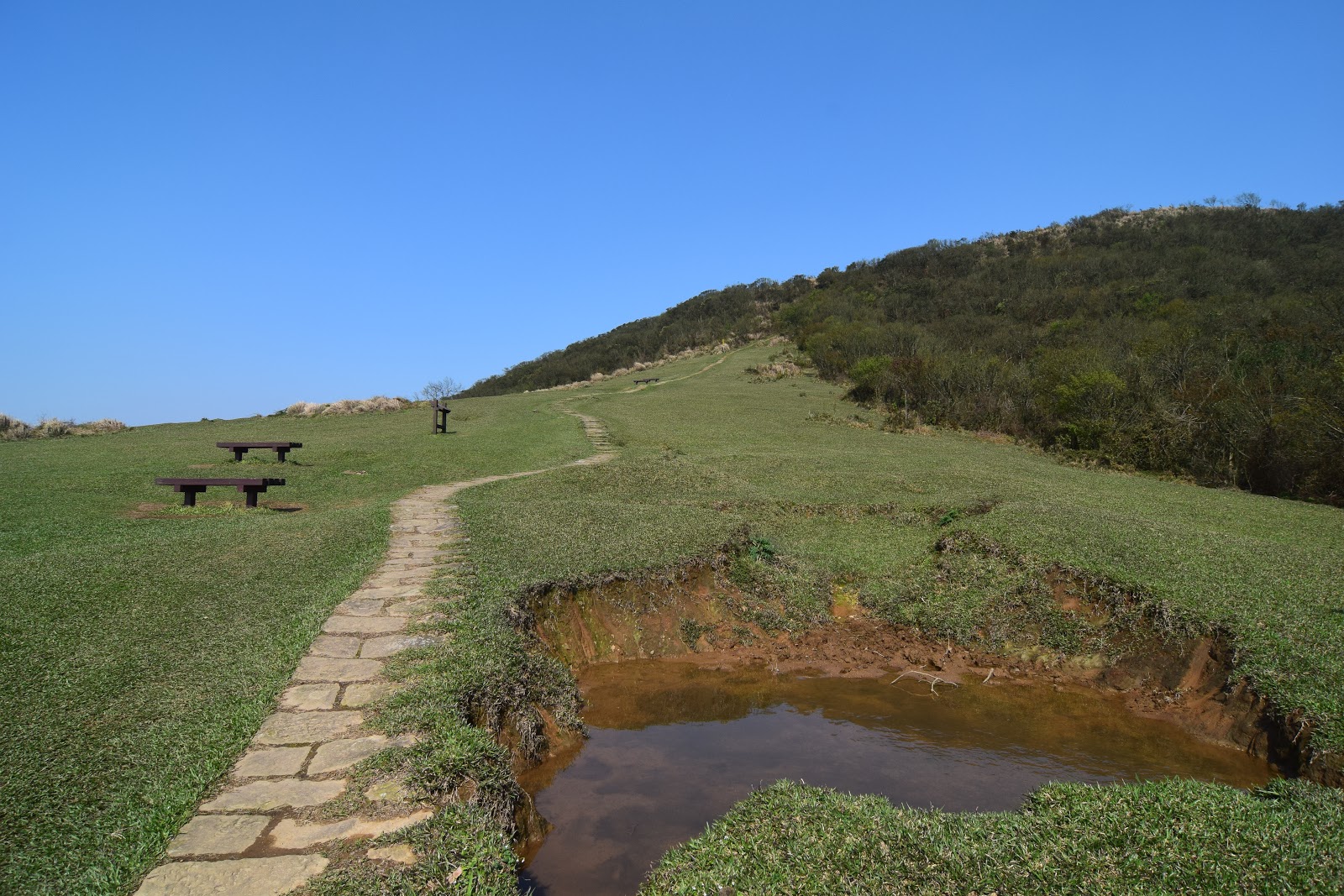 -往石梯嶺高點上坡,回看經過的草原,牛的澡池原來有很多!!