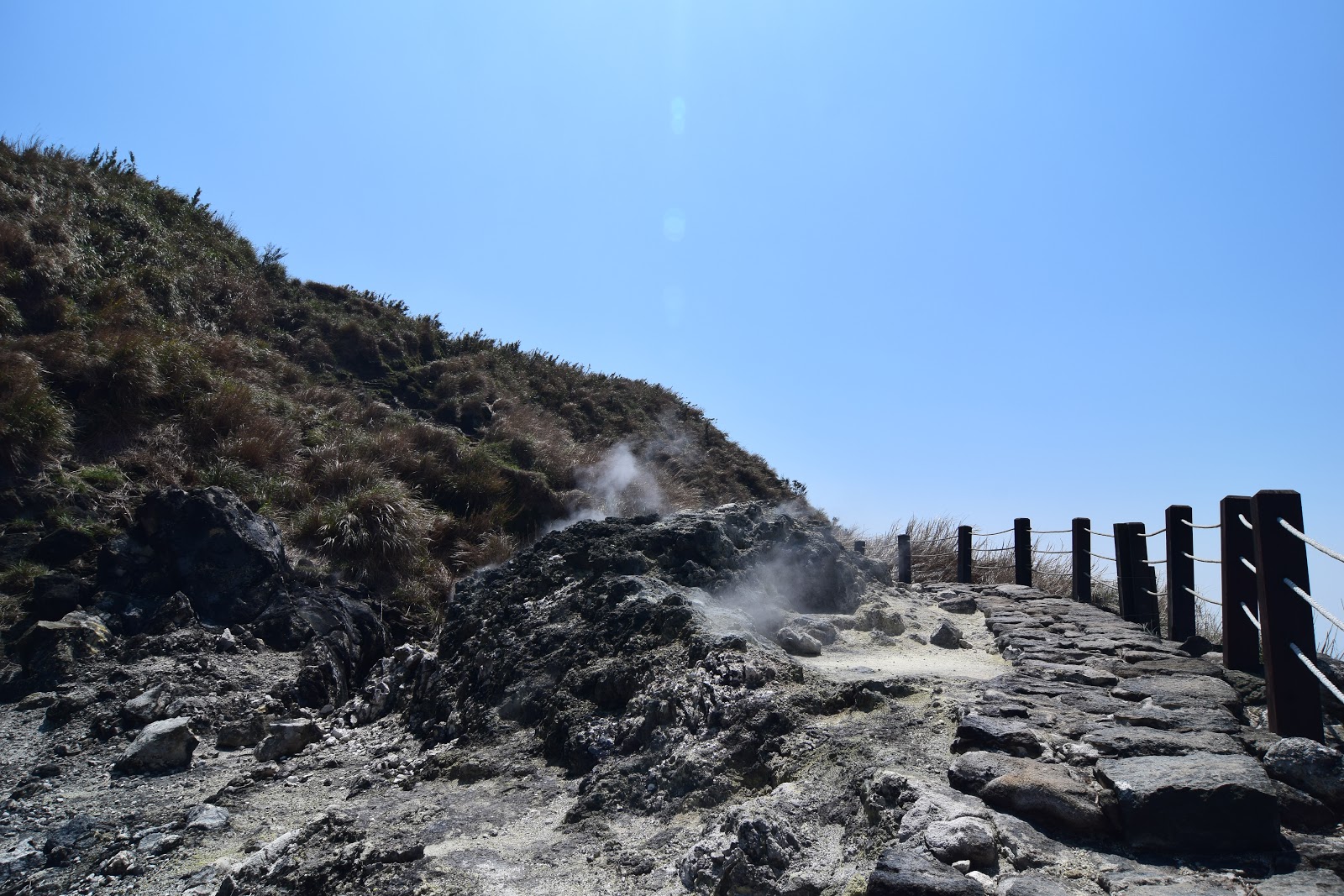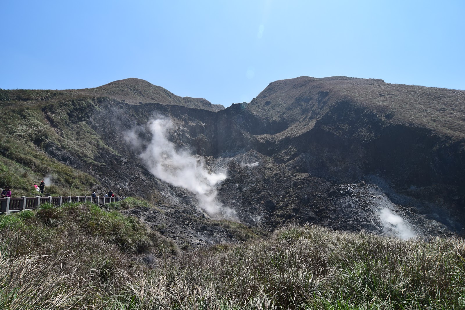 -在遊客中心後能看到小油坑,是七星山上的斷裂口因地底熱氣爆發出來的火山地景。