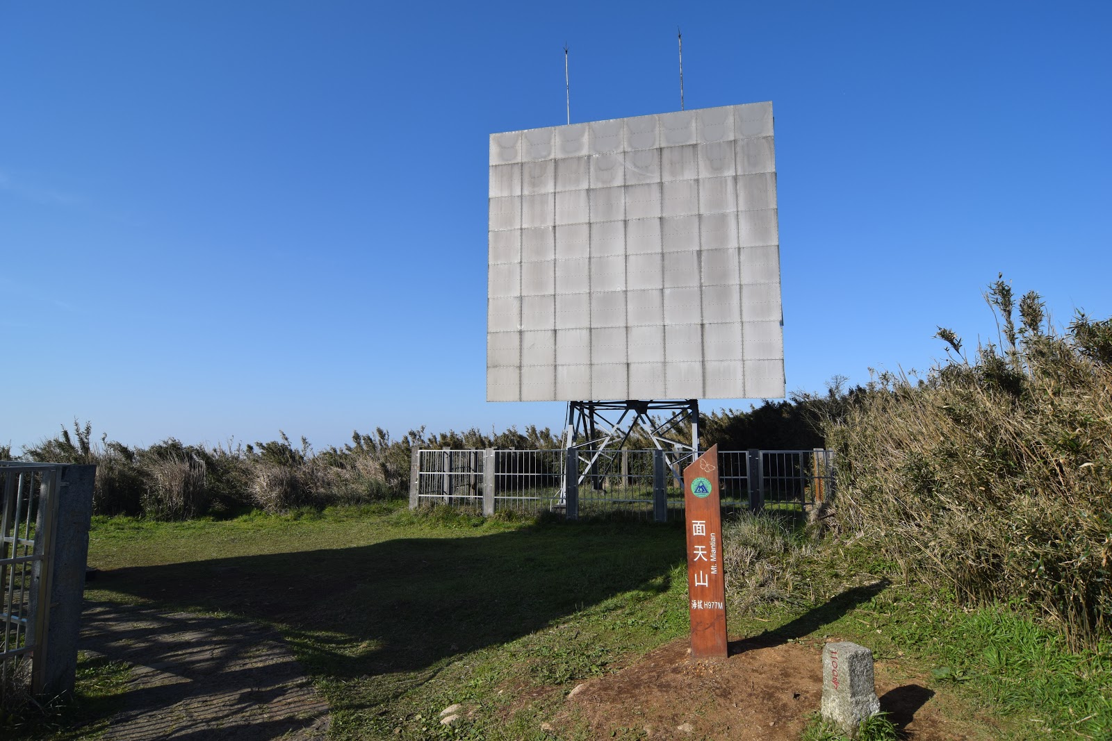 -山脈會把訊號阻隔,反射板的作用就是把山其中一面的訊號互相反射到另一邊,合歡北峰上也有著一樣的裝置。