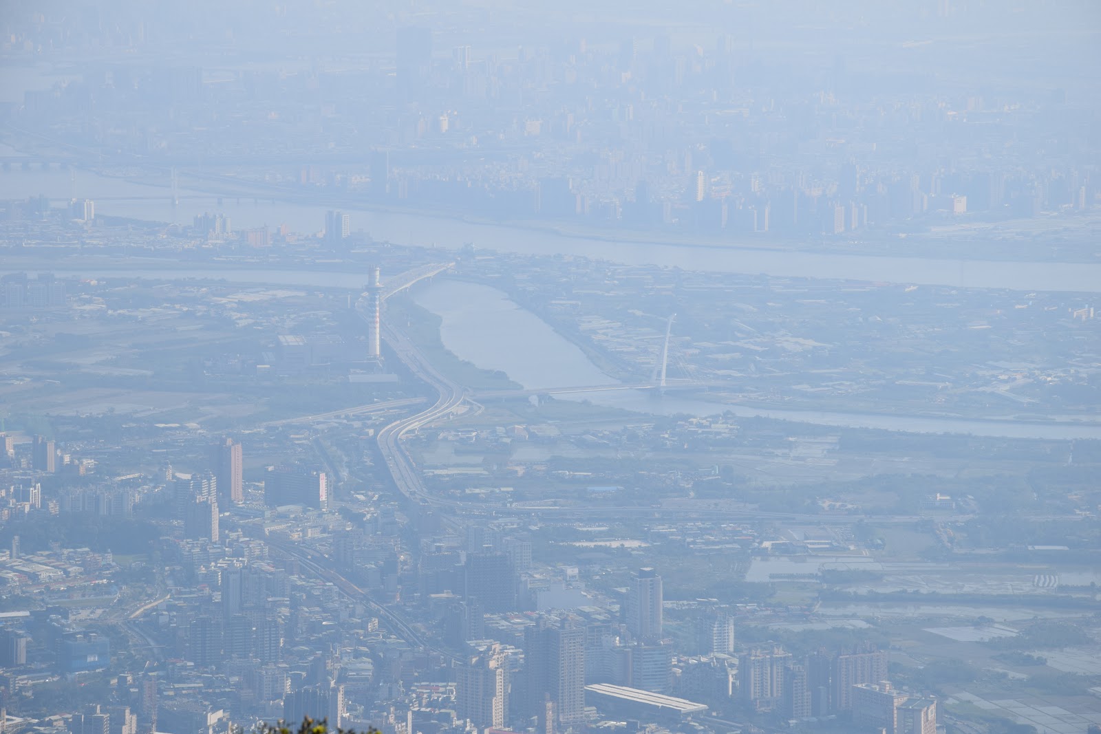 -雖然空氣品質不算太好,但仍能看到遠處的社子島