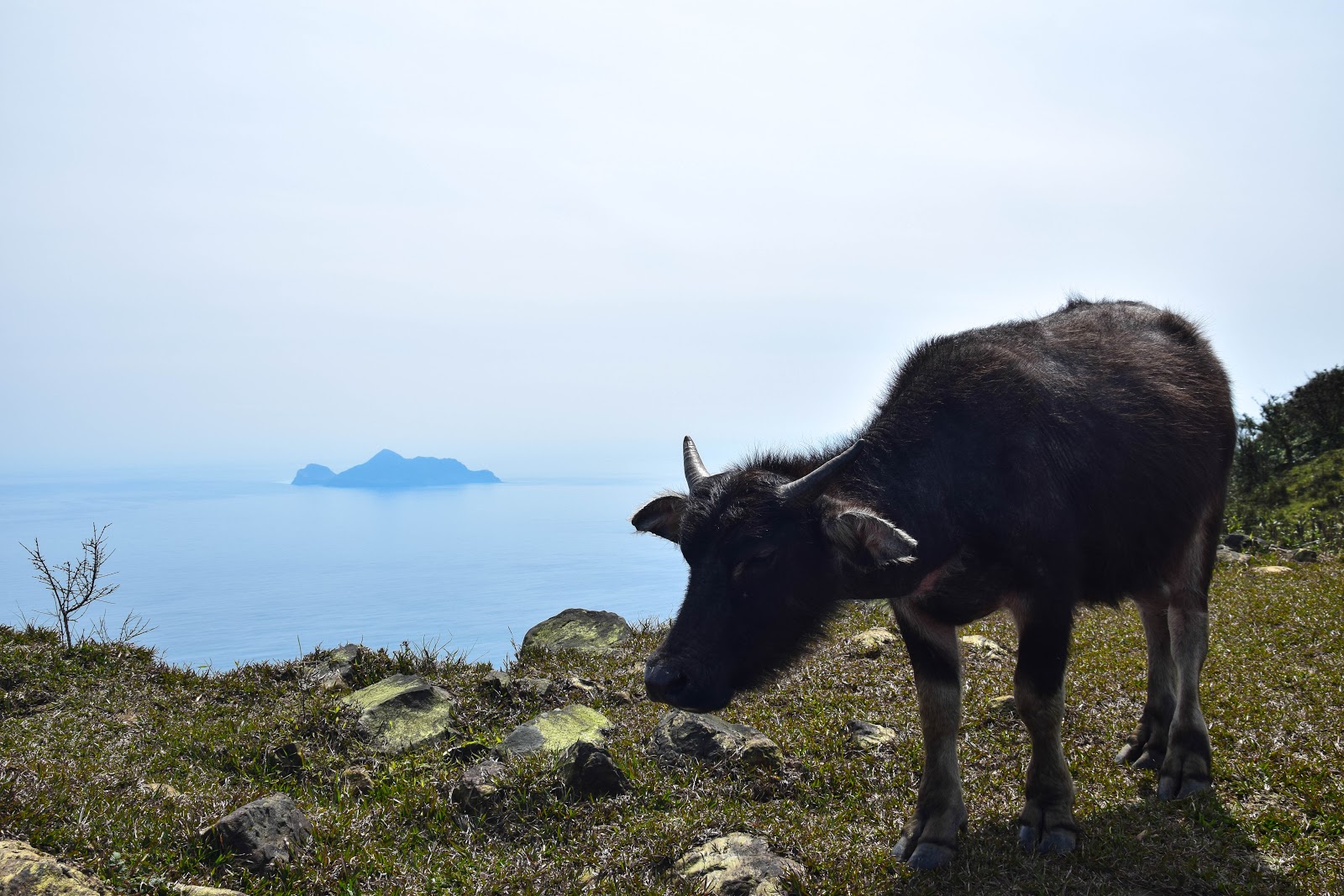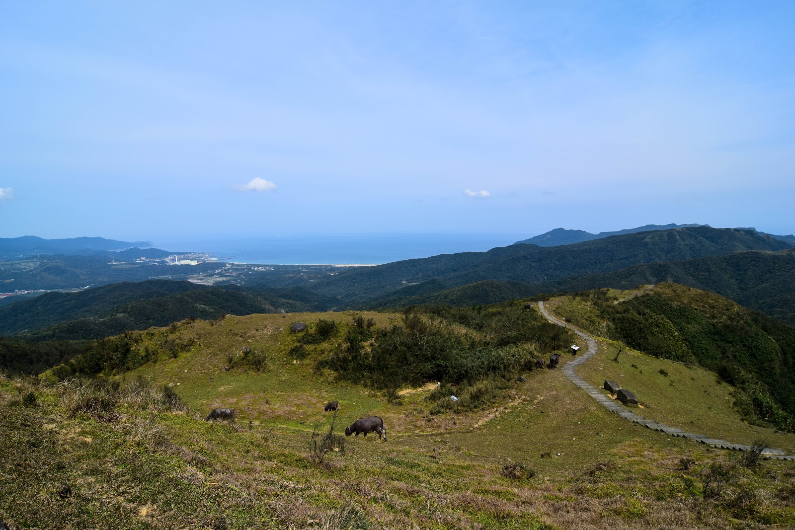 -爬上高點又能看到龜山島,牛隻們也很會挑地方吃草呢!