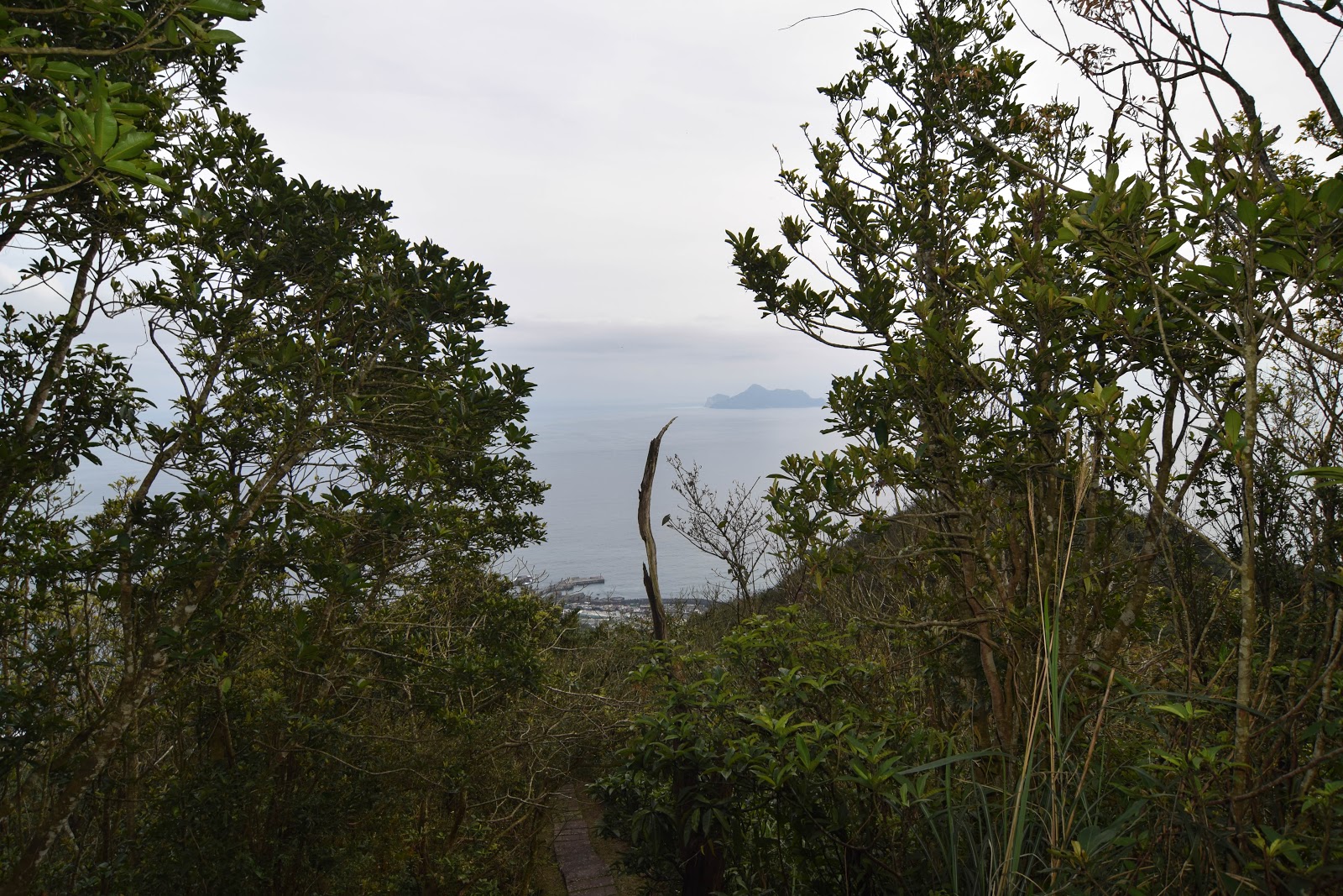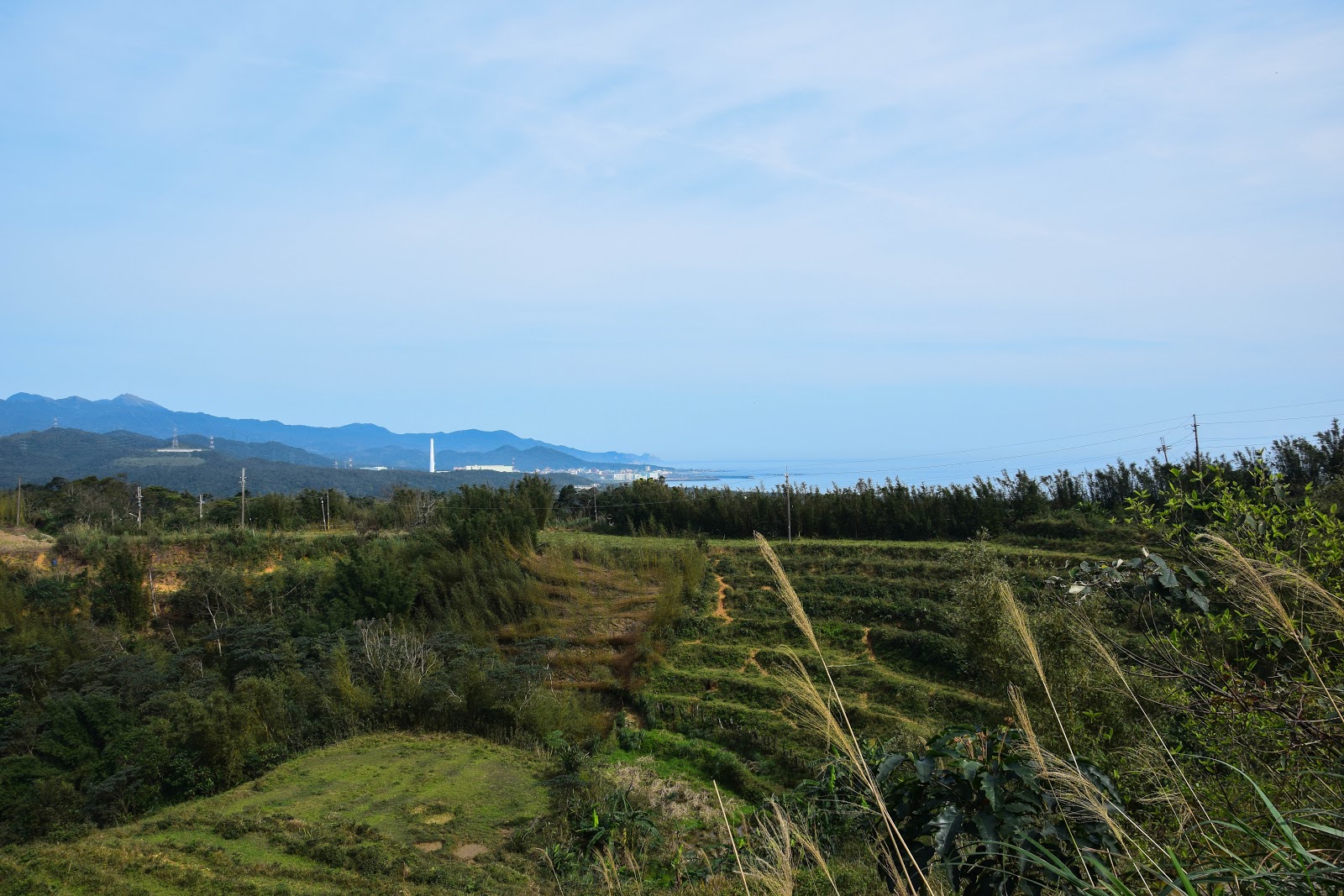 -在草嶺啞口的嶺點上能看到太平洋和龜山島,從這個角度看到的,就是宜蘭了。下方的小鎮就是大里,草嶺古道的另一端點。