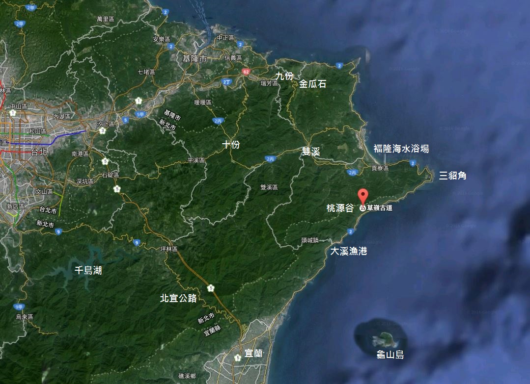 Day 1 :台北火車站>褔隆站>草嶺古道入口土地公廟>草嶺啞口>桃源谷步道(草嶺線)>桃源谷步道(大溪線)>大溪站>頭城站>頭城海水浴場
