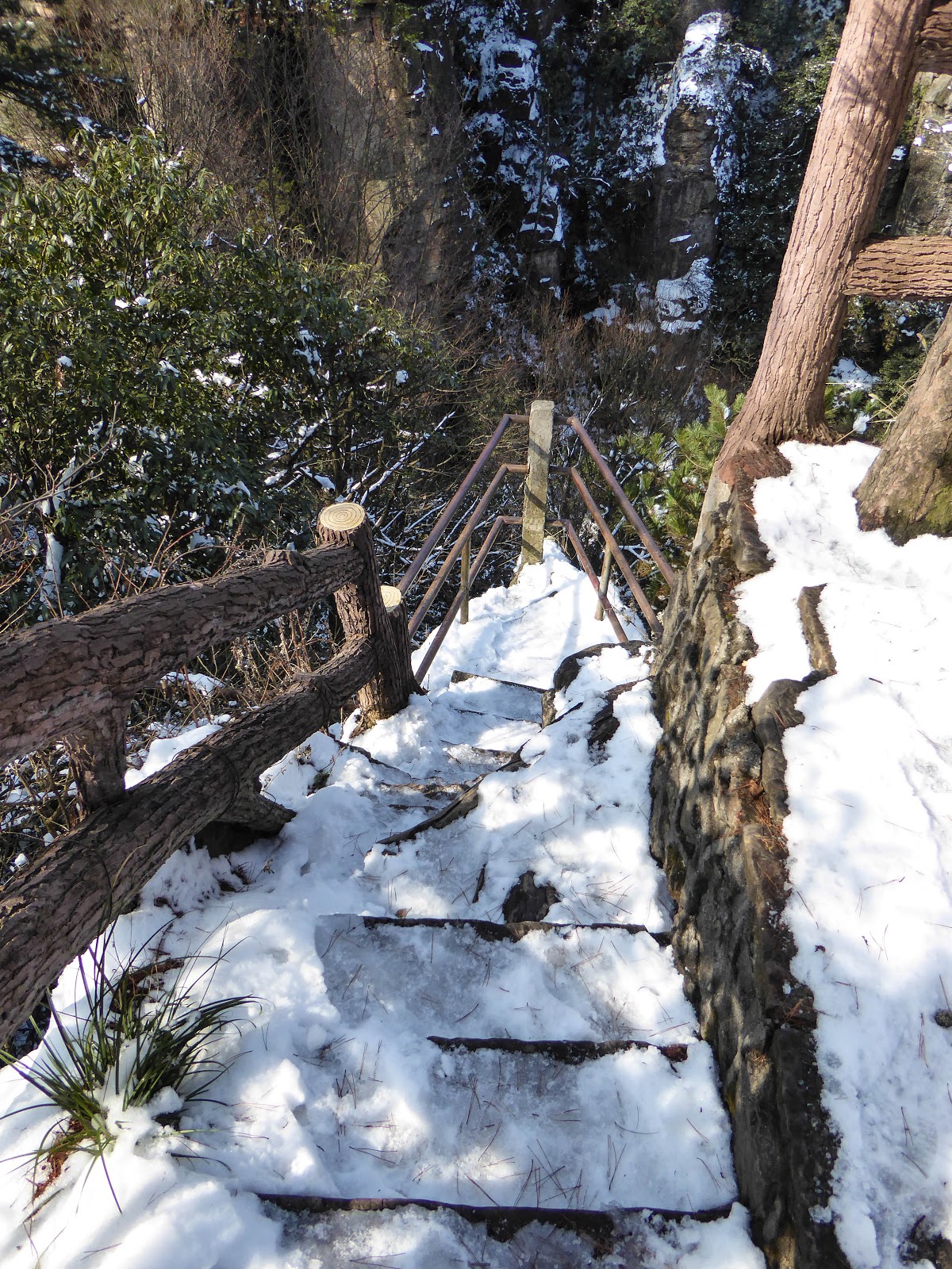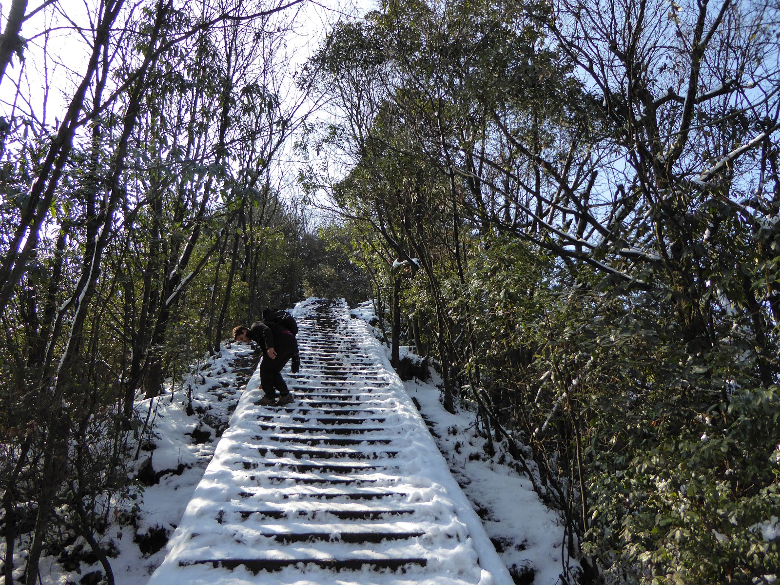 -階級鋪得很好,一般遊客也能走得很輕鬆,一樣沿路往上,雪越來越多了。
