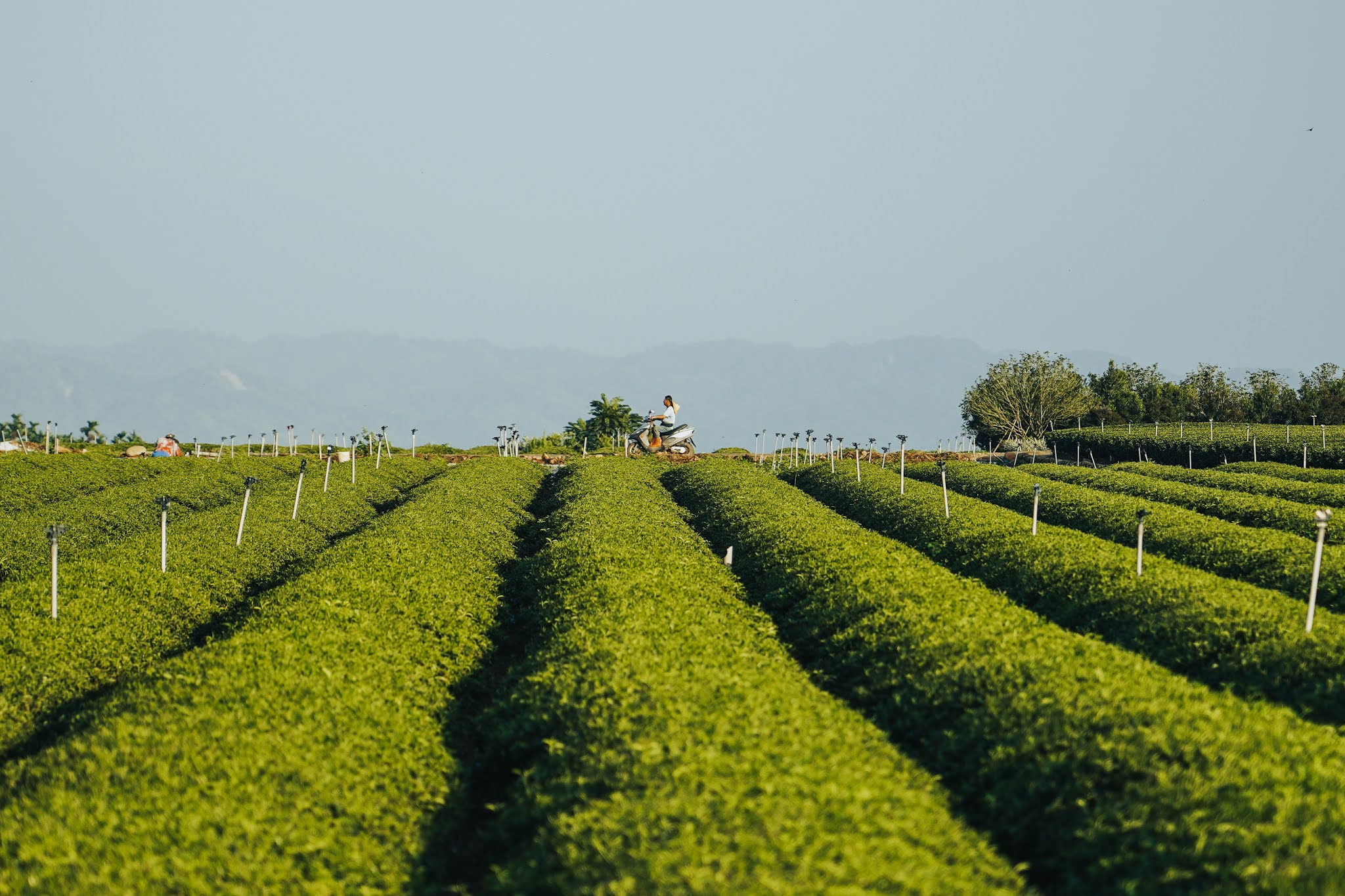 阡陌間騎機車巡田水的歐吉桑,和朦朧的遠山映成一幅美麗的田園景觀。