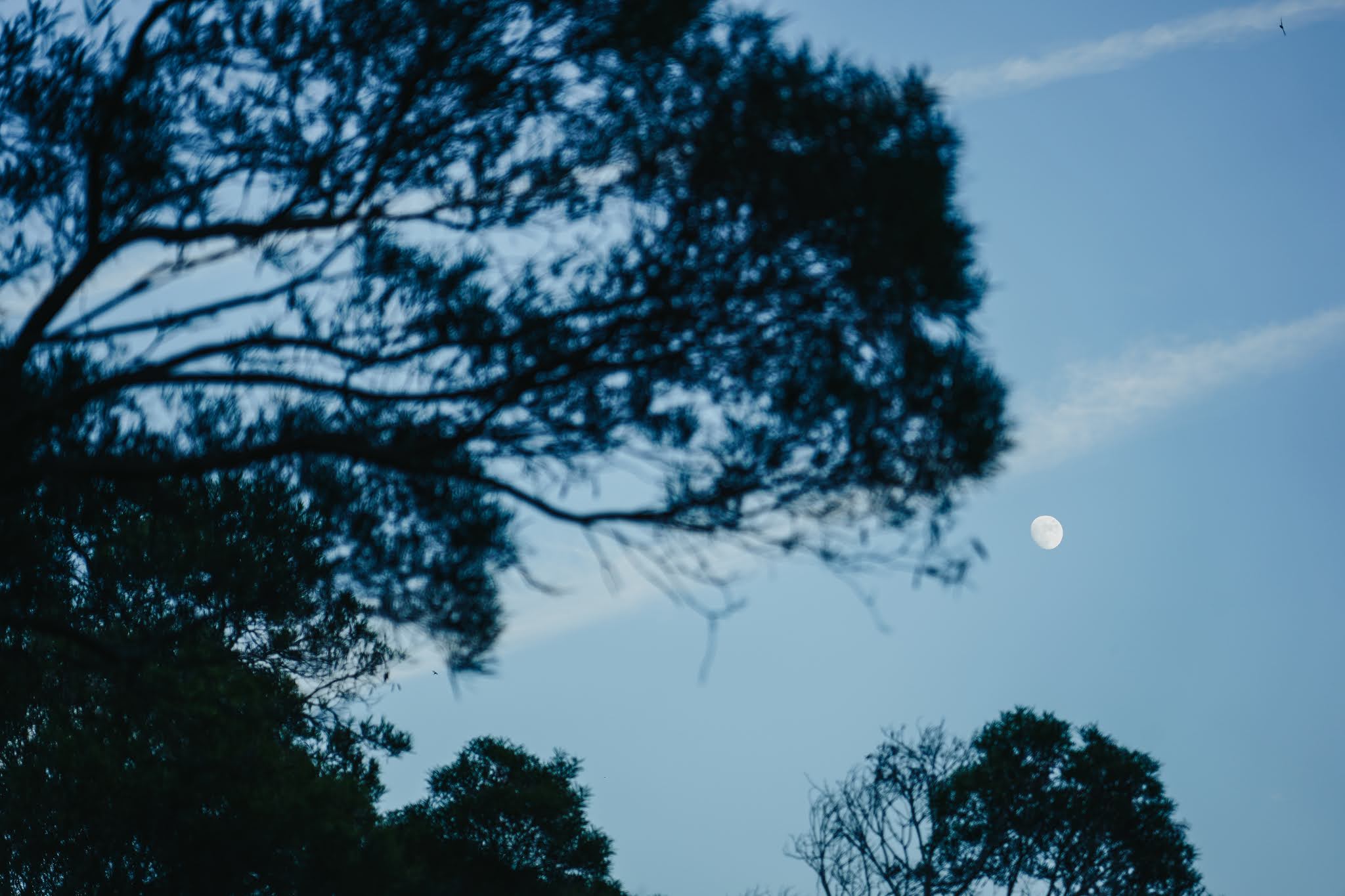 傍晚的藍天和白雲極美,在月亮升起暮色將至時,我們也慢慢走回停車場了。
