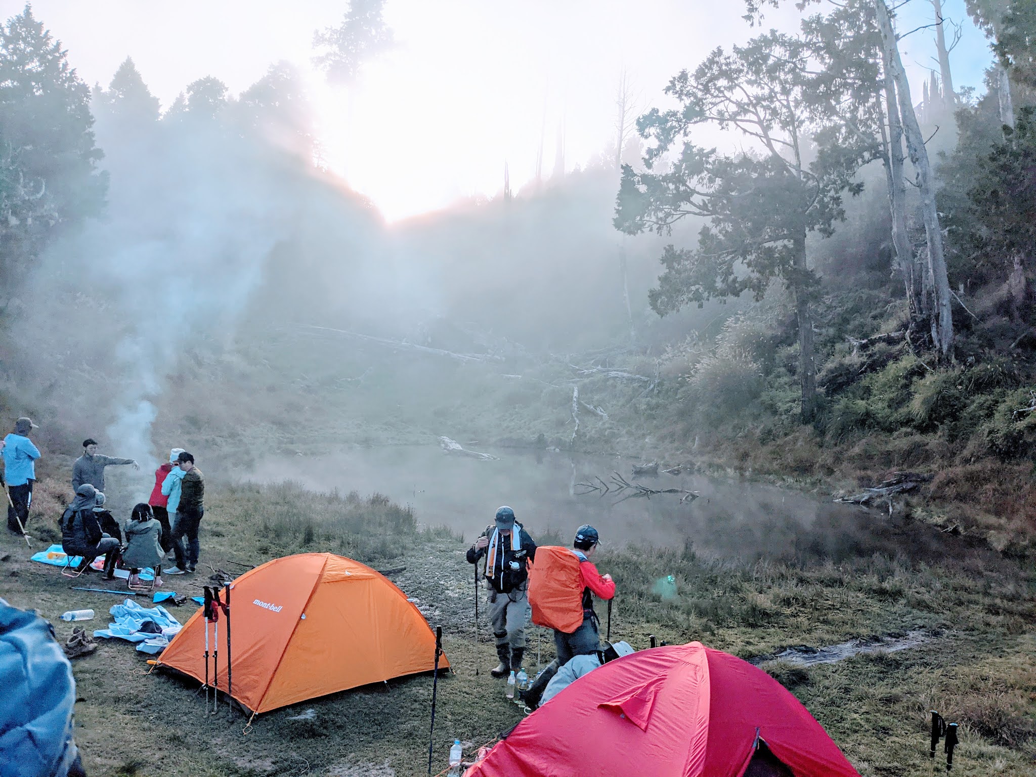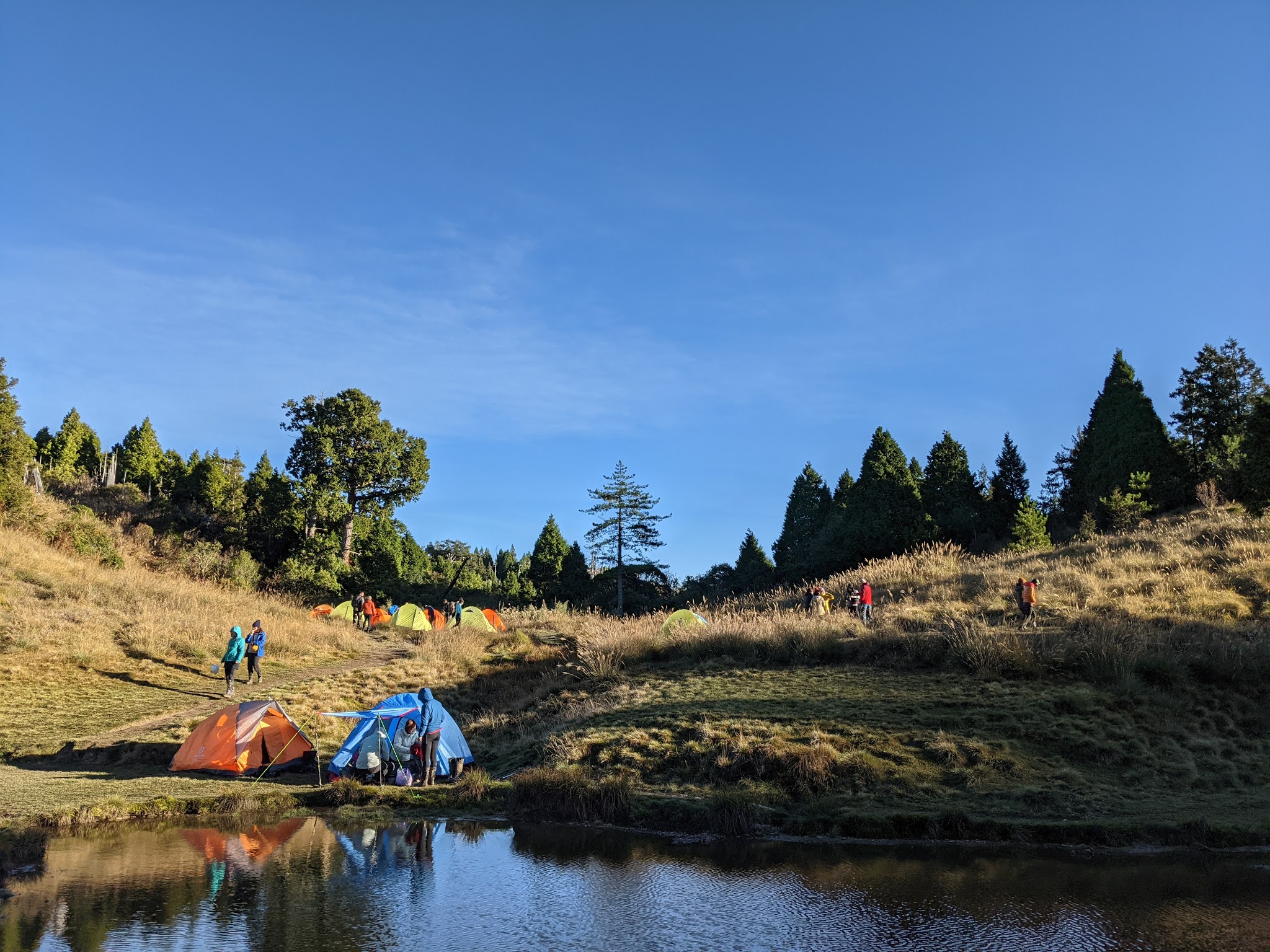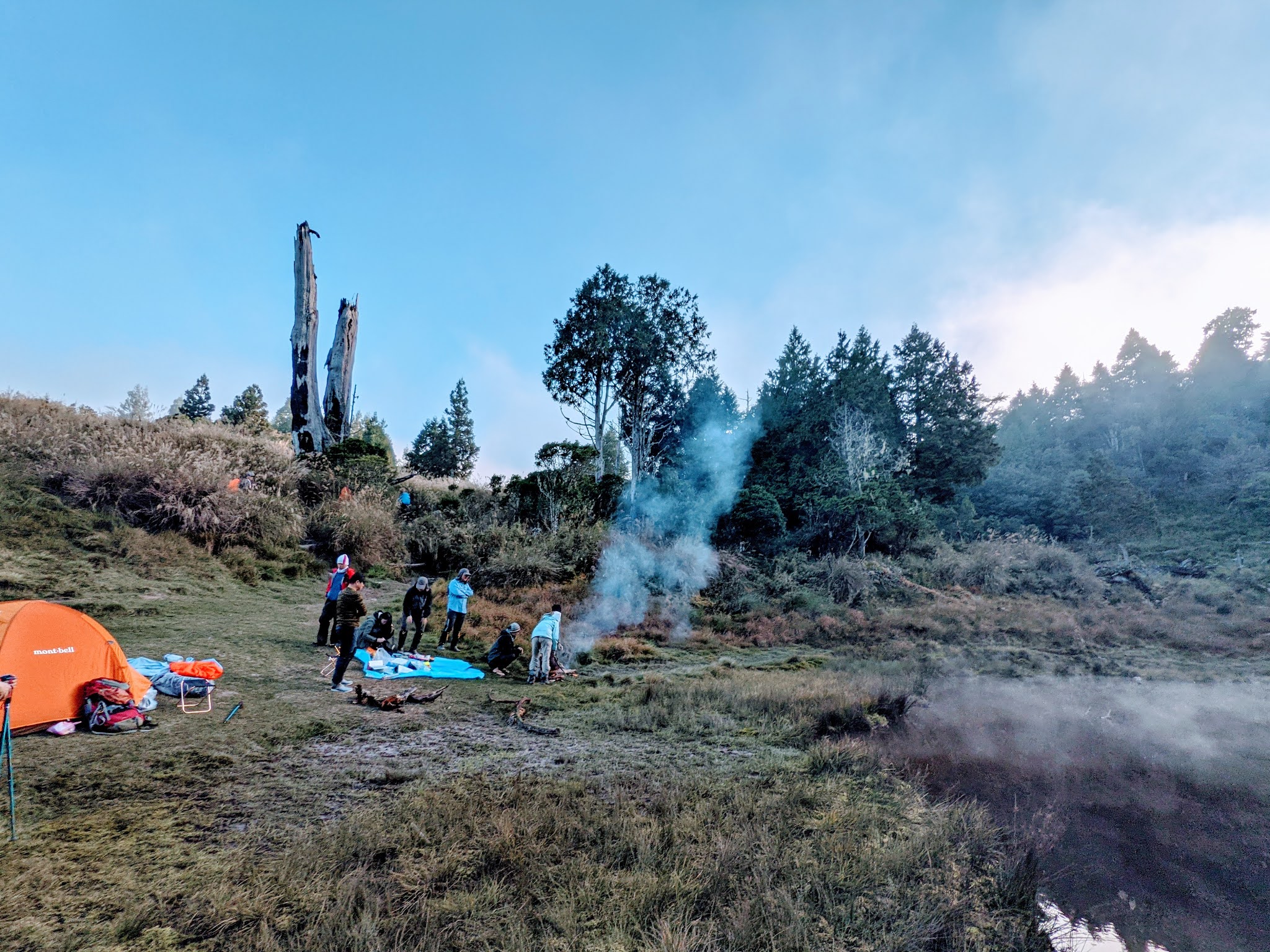 由於假日關係,今天在加羅湖過夜的人非常多,所以部分晚到的人只能把帳篷搭在偉蛋池,倒也算是有自己的小天地,而且好處是離廁所較近。