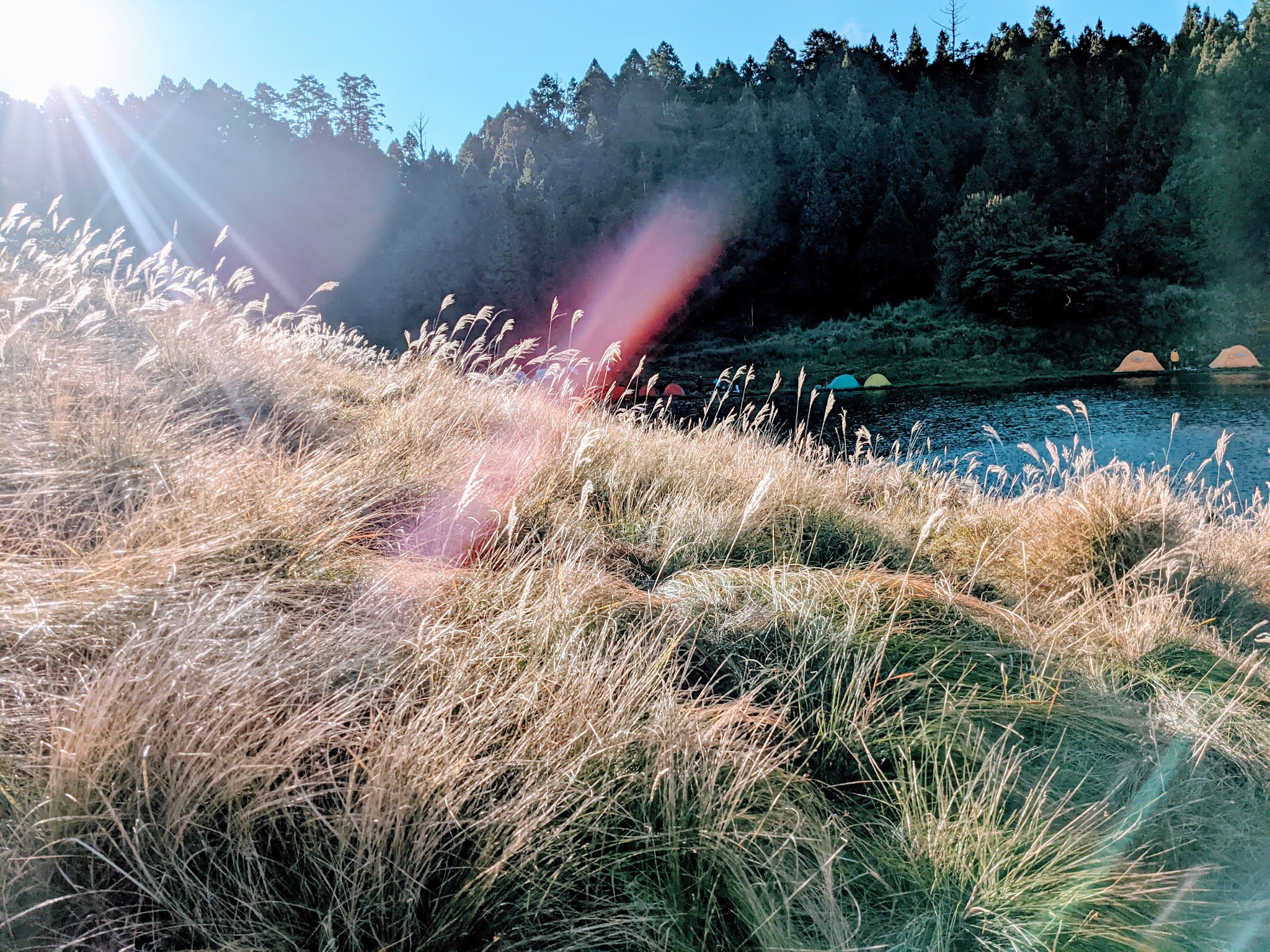 從芒草區往帳篷方向拍可以拍到整個加羅湖。