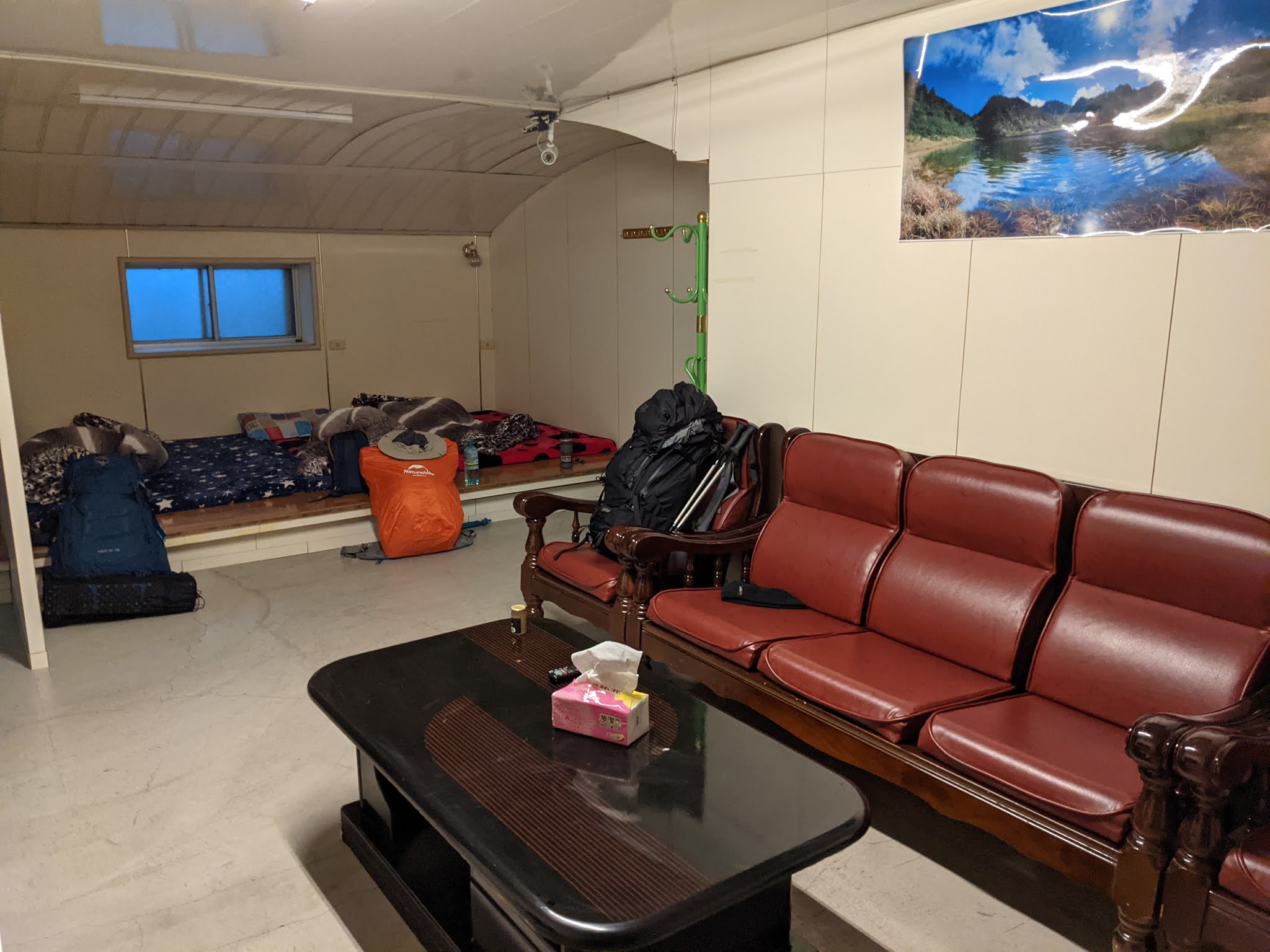 這次行程是兩天兩夜的行程,週五晚上先到火車站集合,先到宜蘭住一晚,下面是我們今天入住的民宿(在二樓),床鋪都是大通鋪為主,我當晚的床位就在照片最左邊的位置,民宿隔壁就是全家超商,補給非常方便,睡前跟嚮導/司機喝酒聊天。