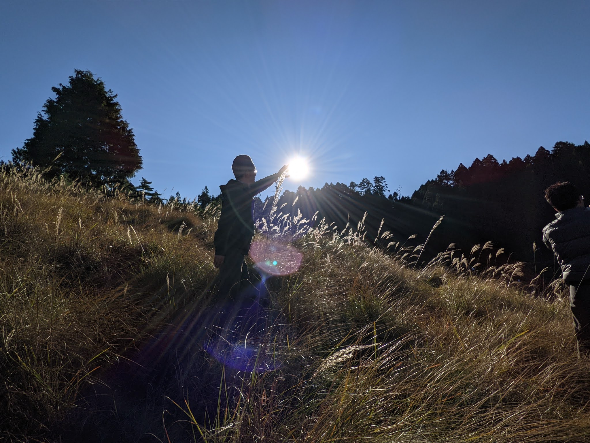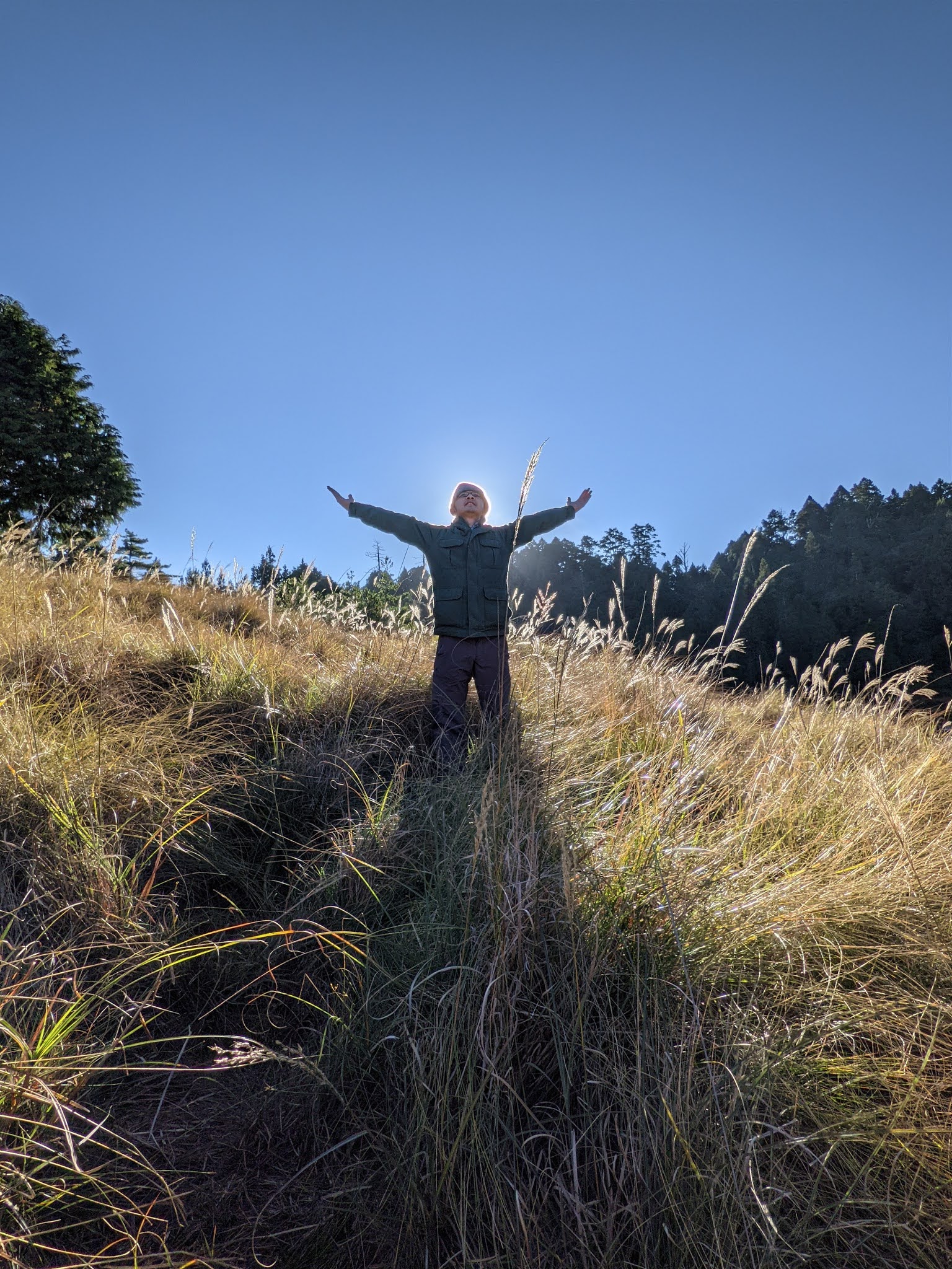 這時霧漸漸濃了,太陽光渲染在這一片的芒草上,景色非常的迷人。