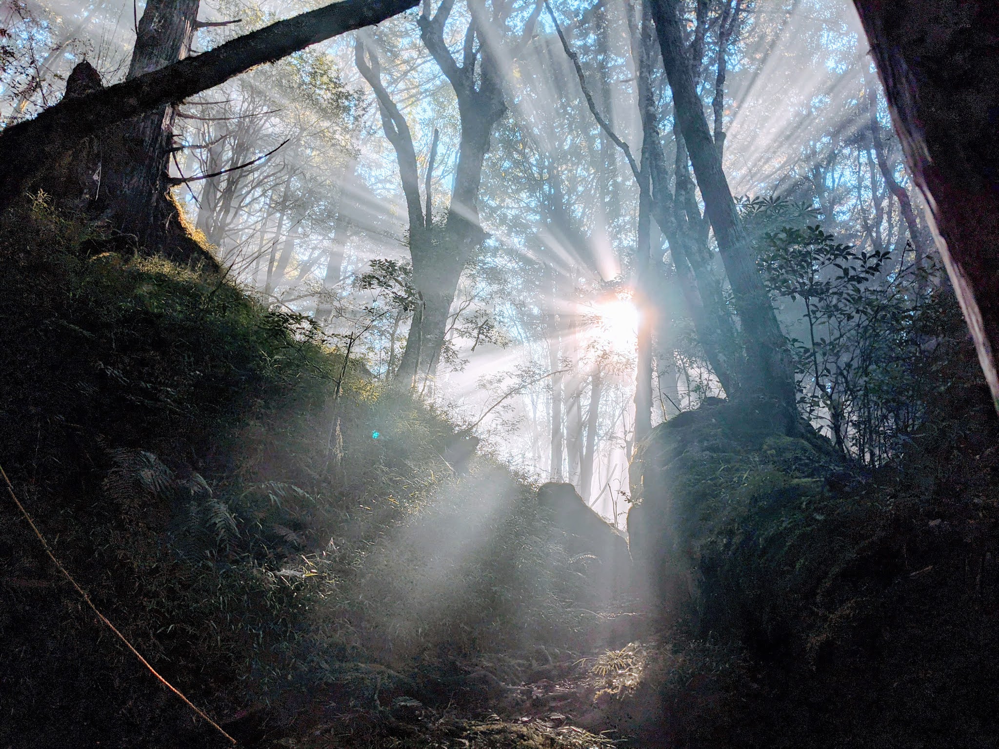 走到最後已經上氣不接下氣了,這時山上下來一位太加縱走的單攻前輩跟我說已經快到了,短暫跟他聊天過後,回頭想繼續休息就看到這光芒四射的太陽光,能夠遇到這麼好的時機真的太棒了,這還不拍爆它,不誇張拍完整個精神就回來了。