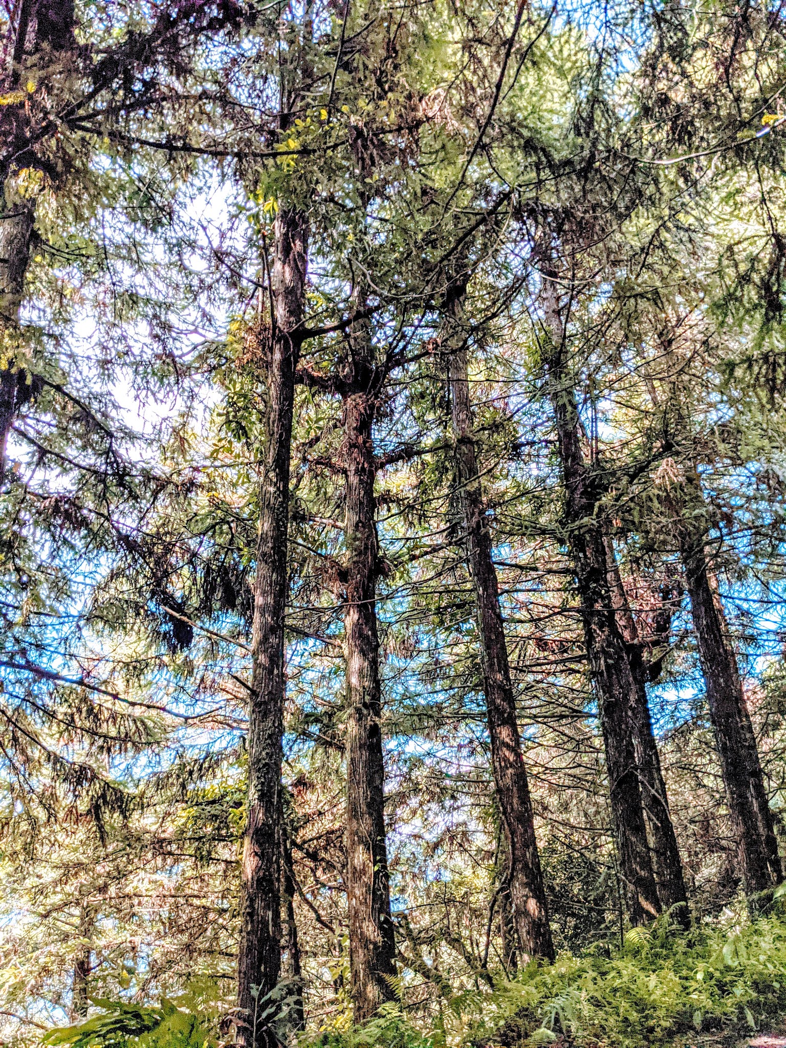 休息一下之後繼續前往,途中可以欣賞高聳的樹林正透過陽光閃閃發光著。